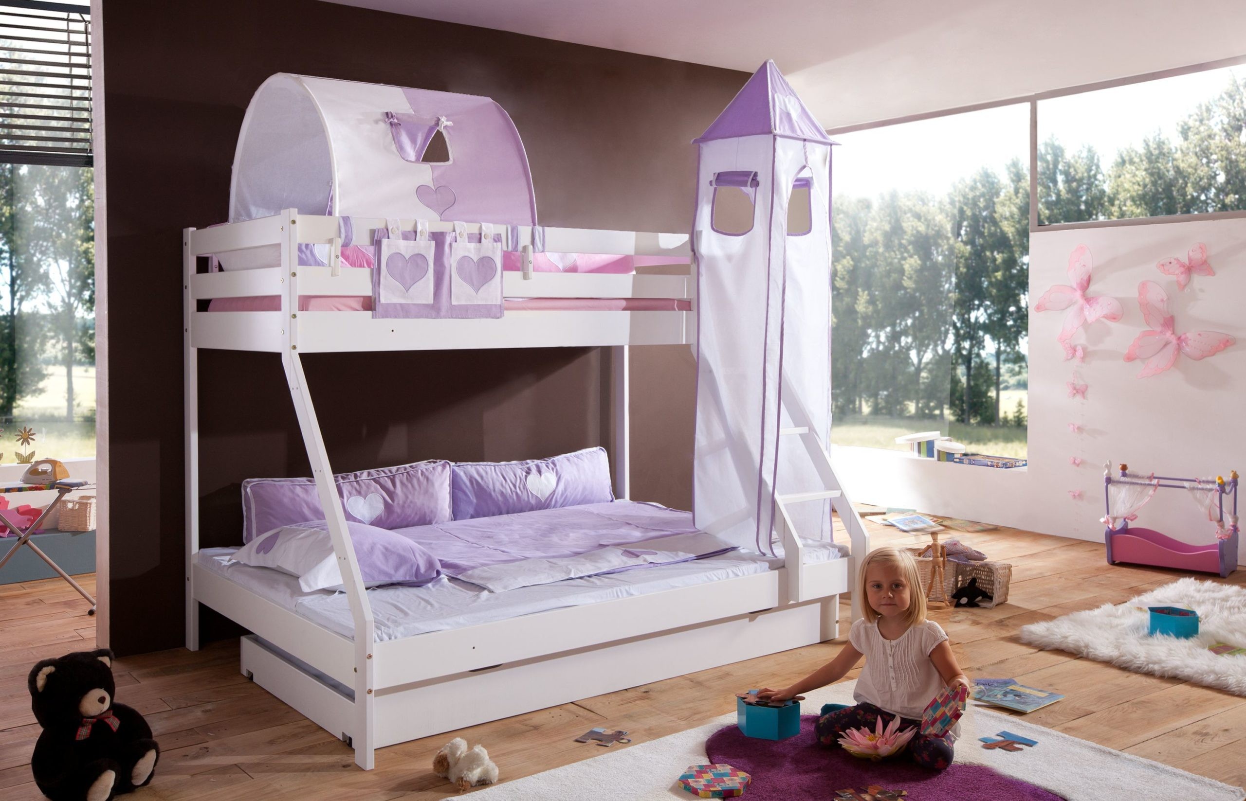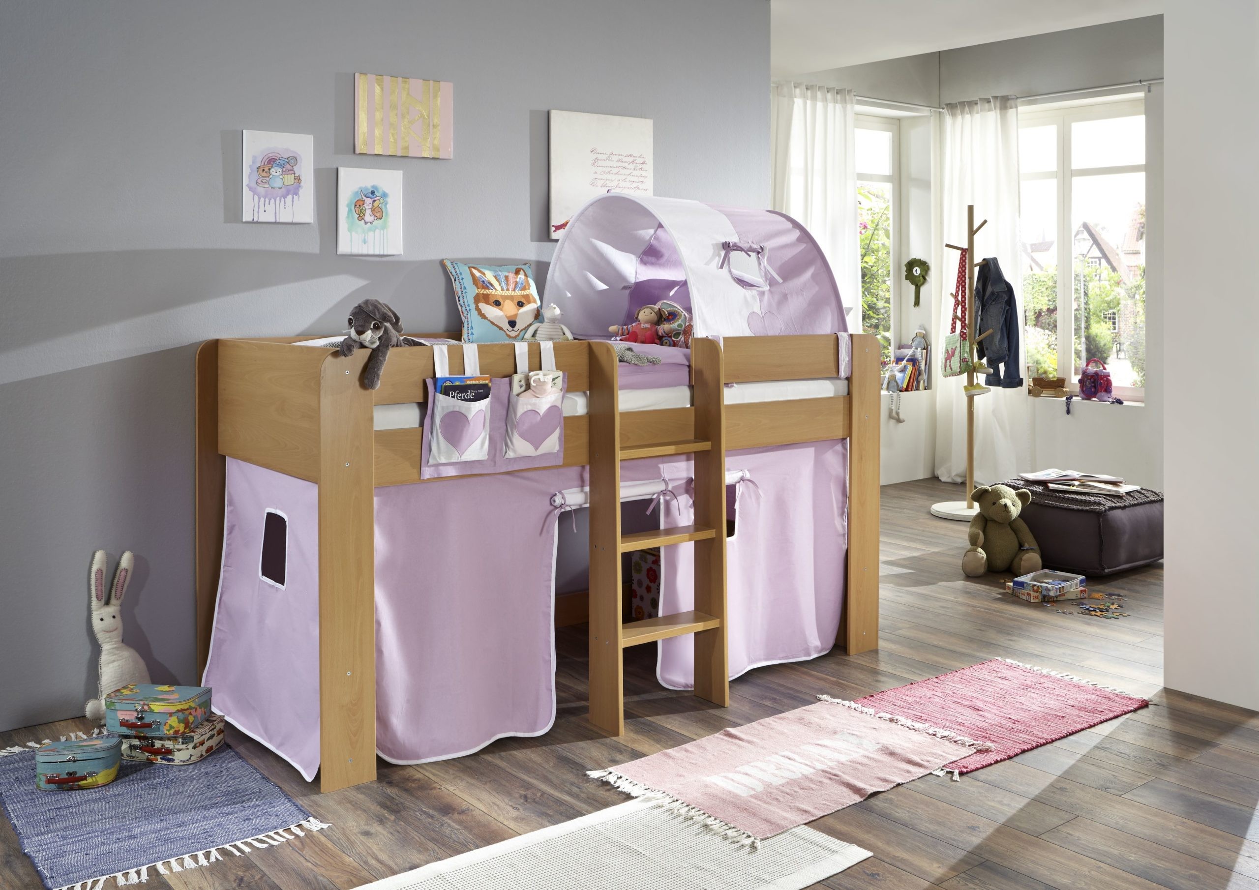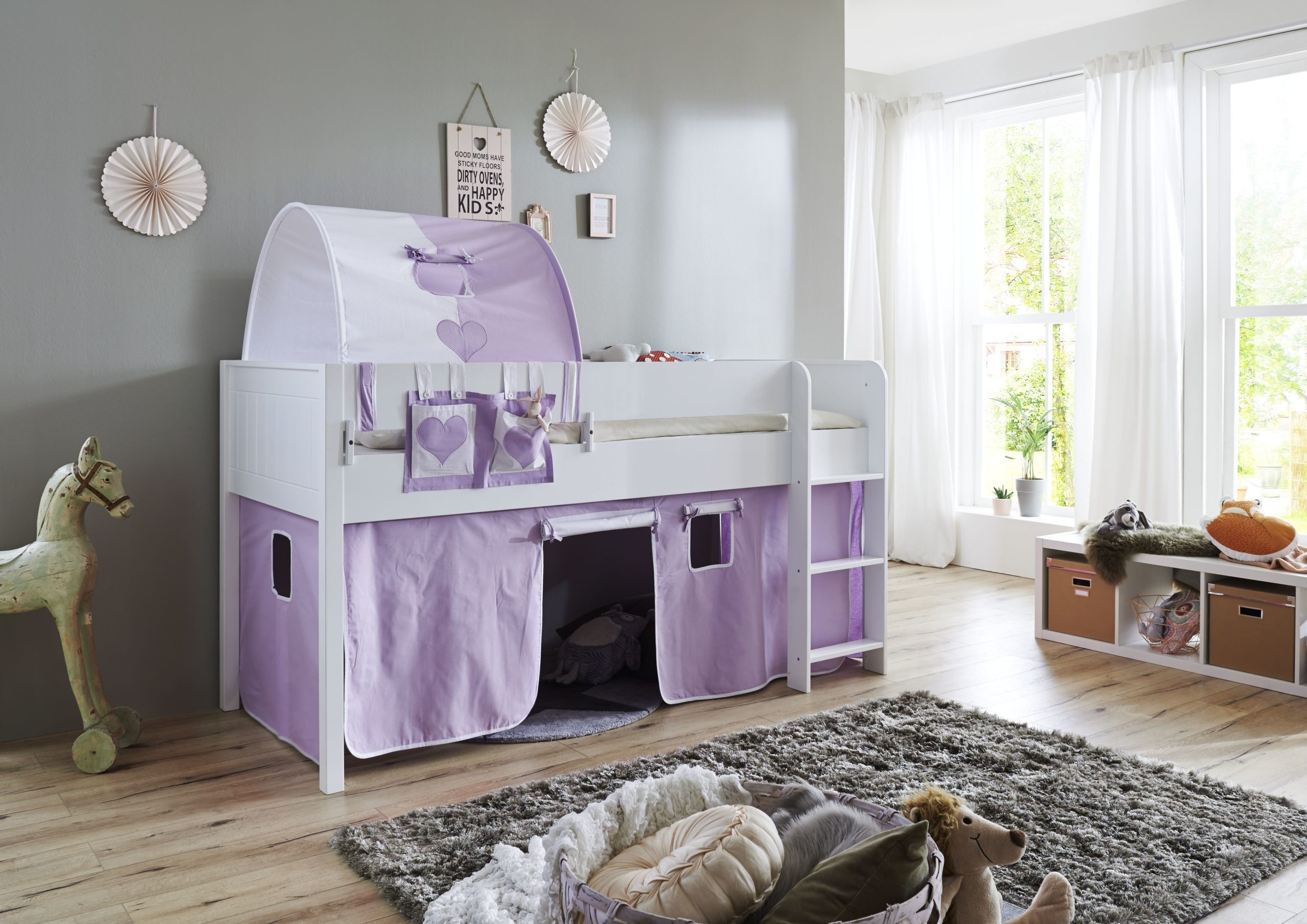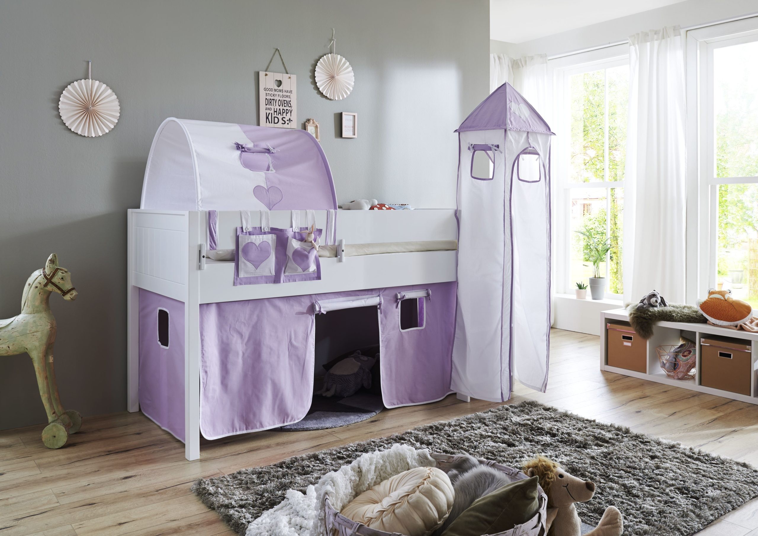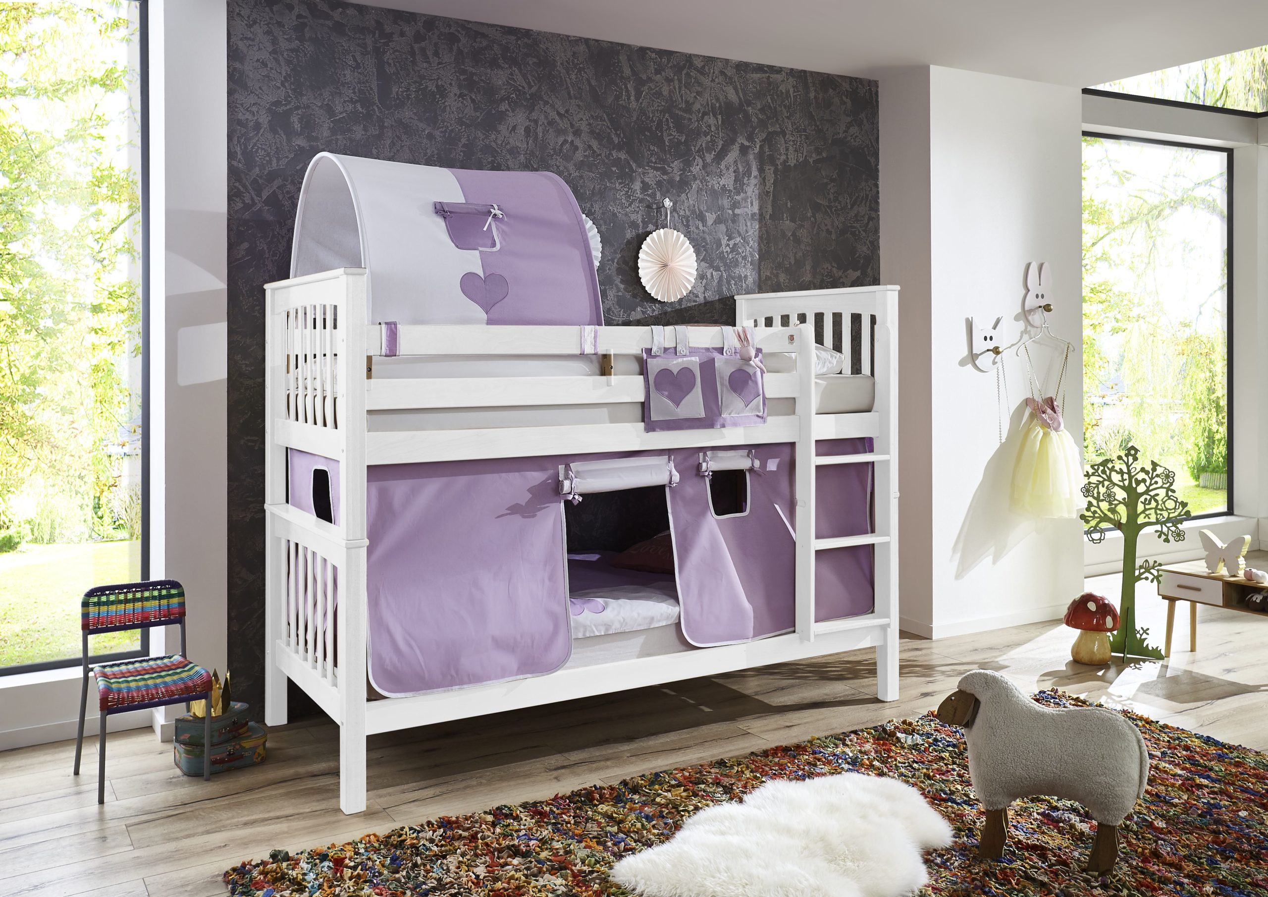 1-er Tunnel purple/weiß/herz 2038 für Relita Betten Halterung natur