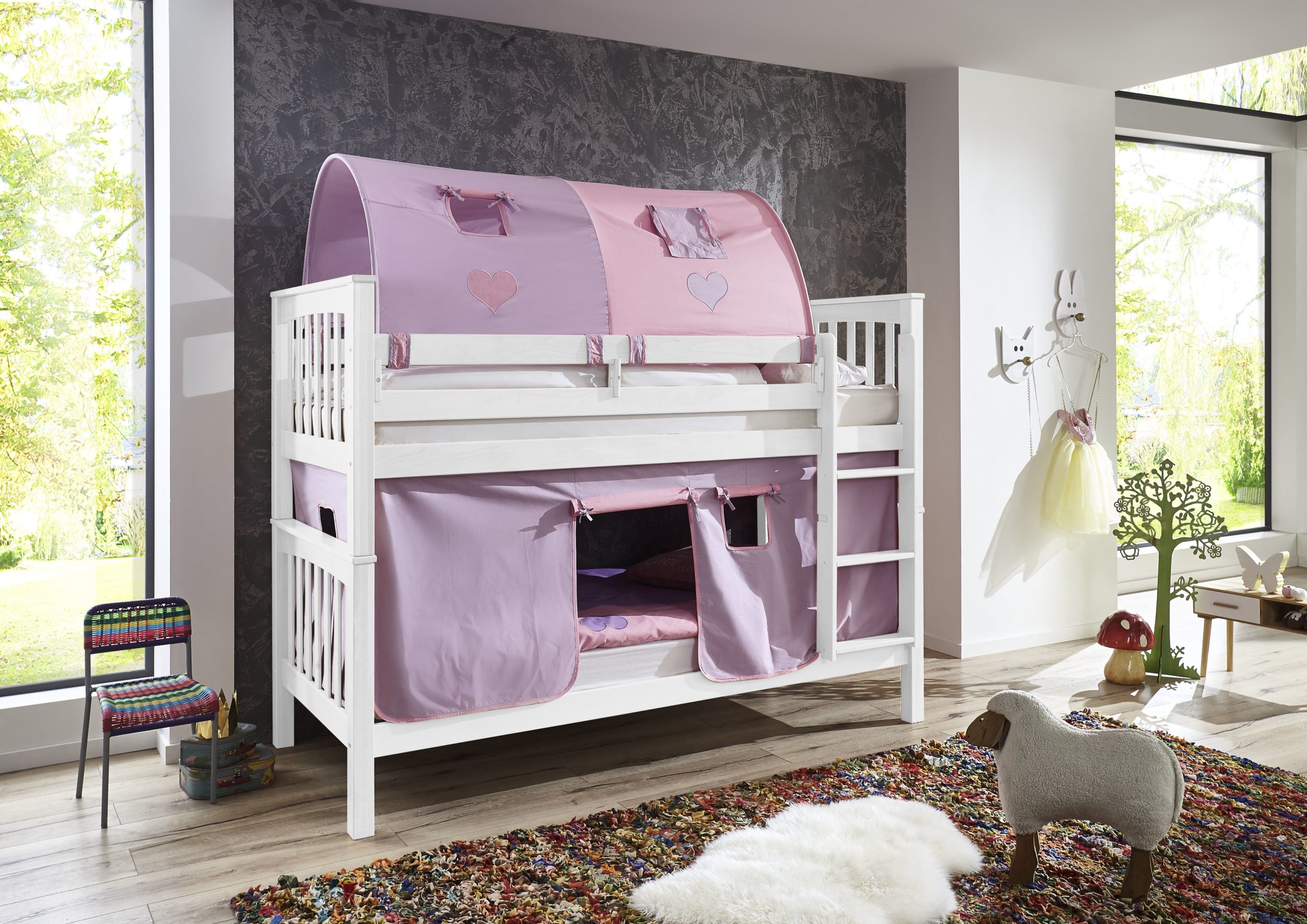 2-er Tunnel rosa/weiß/herz 2025 für Relita Betten Halterung weiß