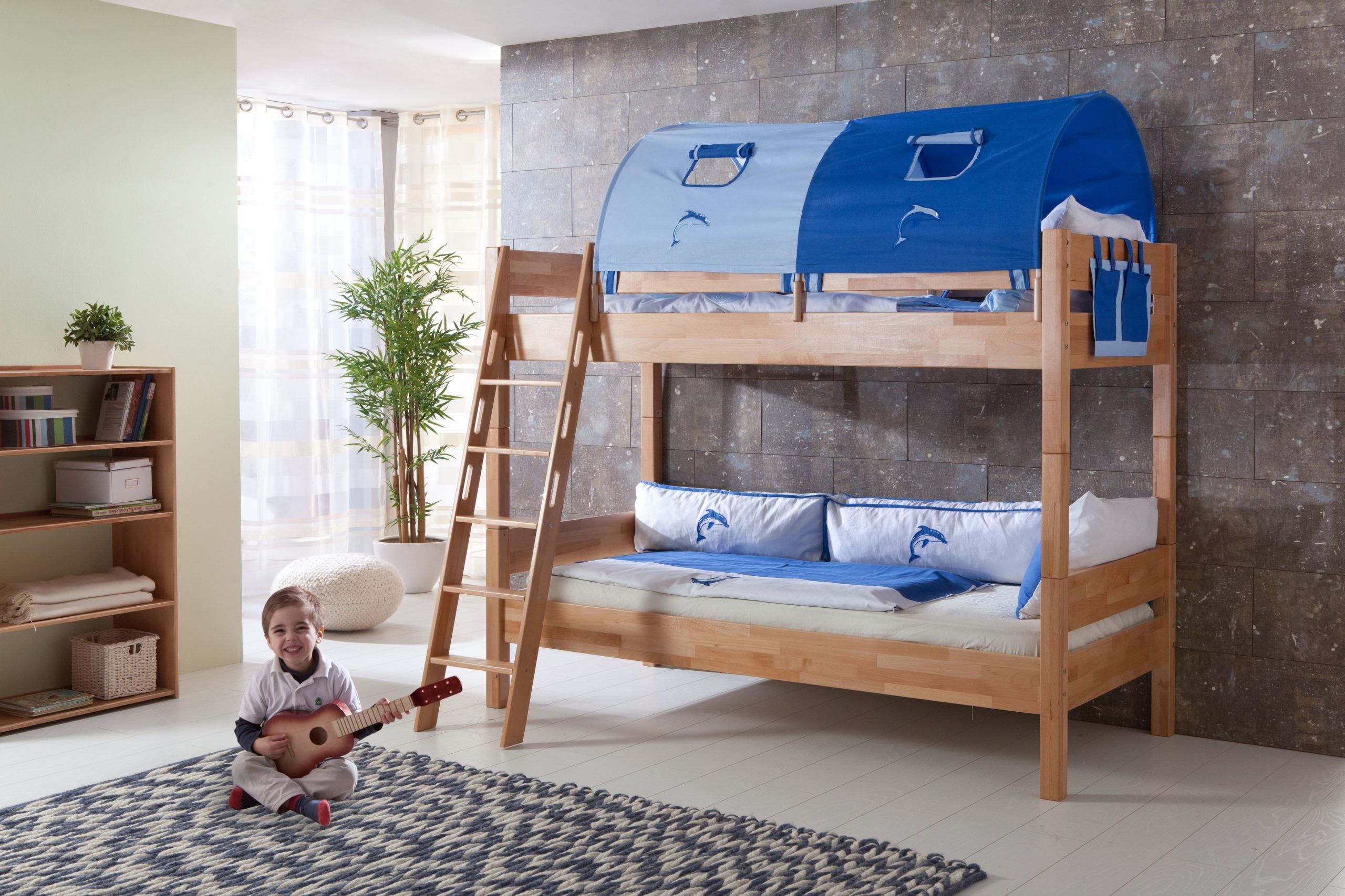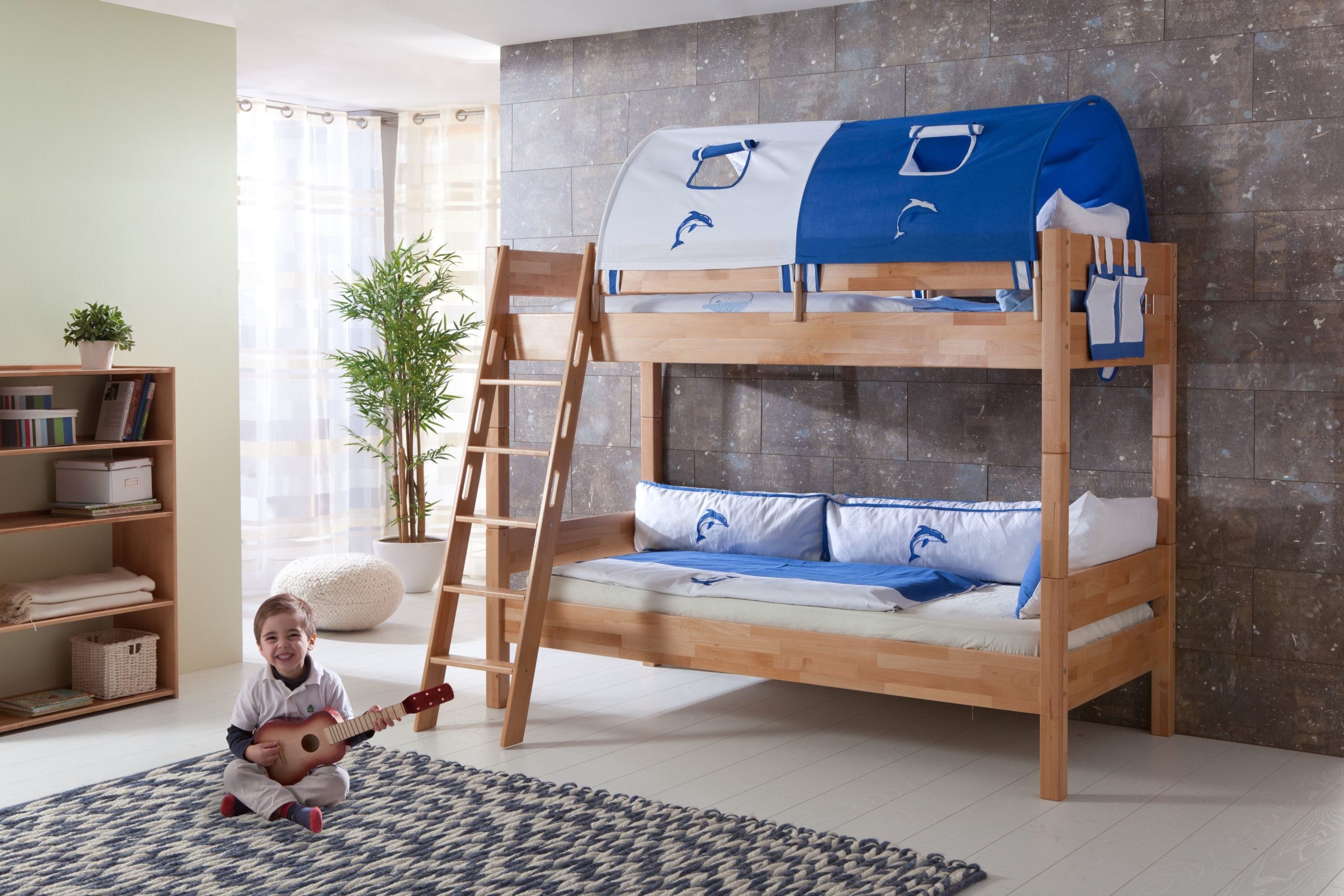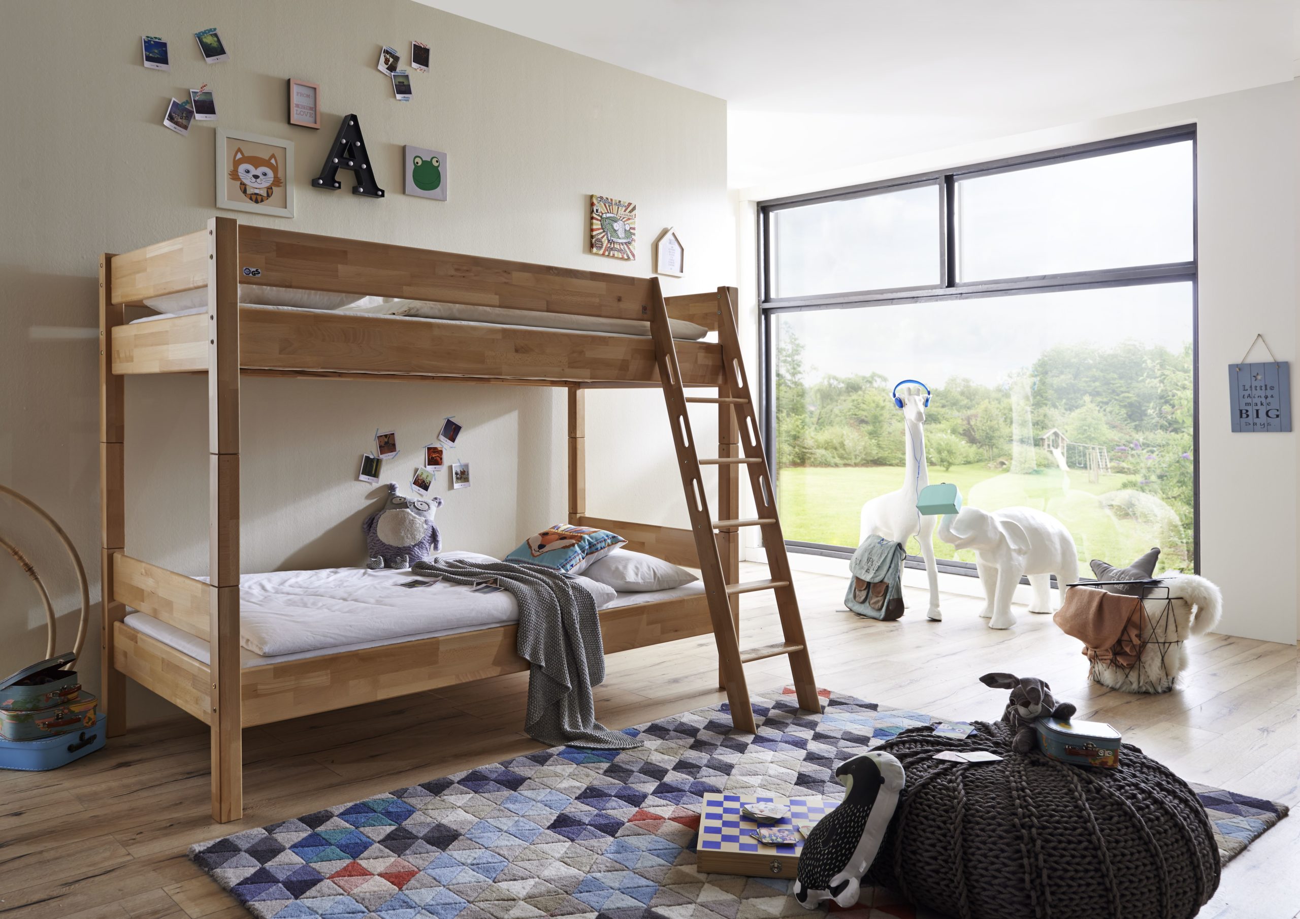Etagenbett STEFAN Buche massiv natur lackiert Stabverleimt geplankte Optik mit Textilset