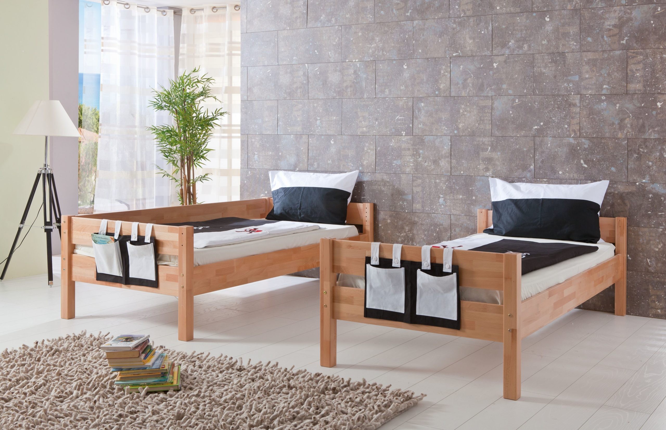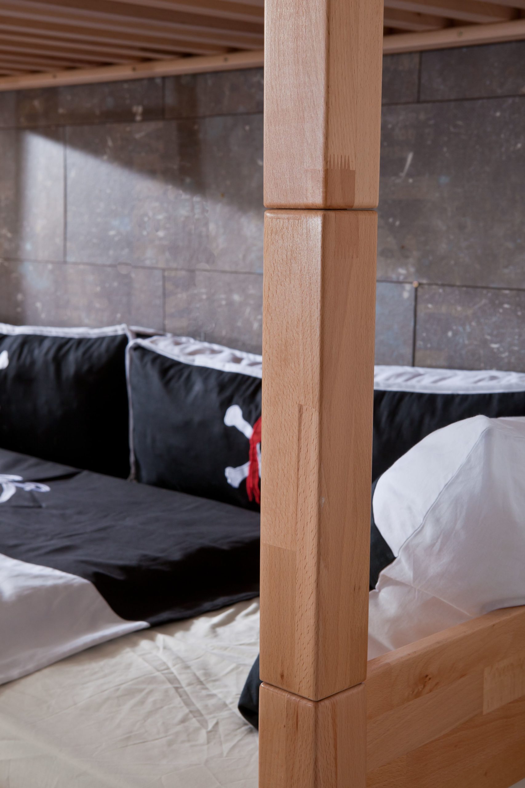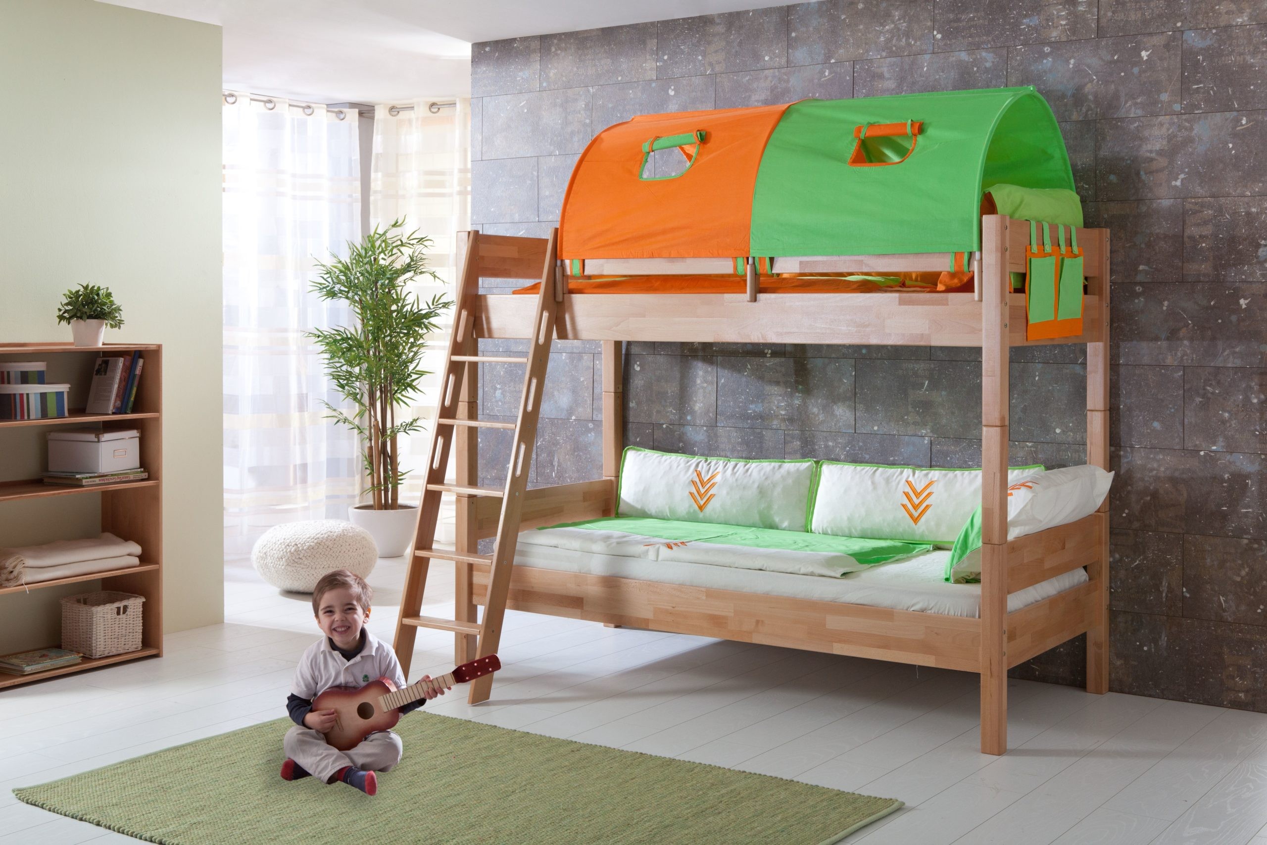 Etagenbett STEFAN Buche massiv natur lackiert Stabverleimt geplankte Optik mit Textilset