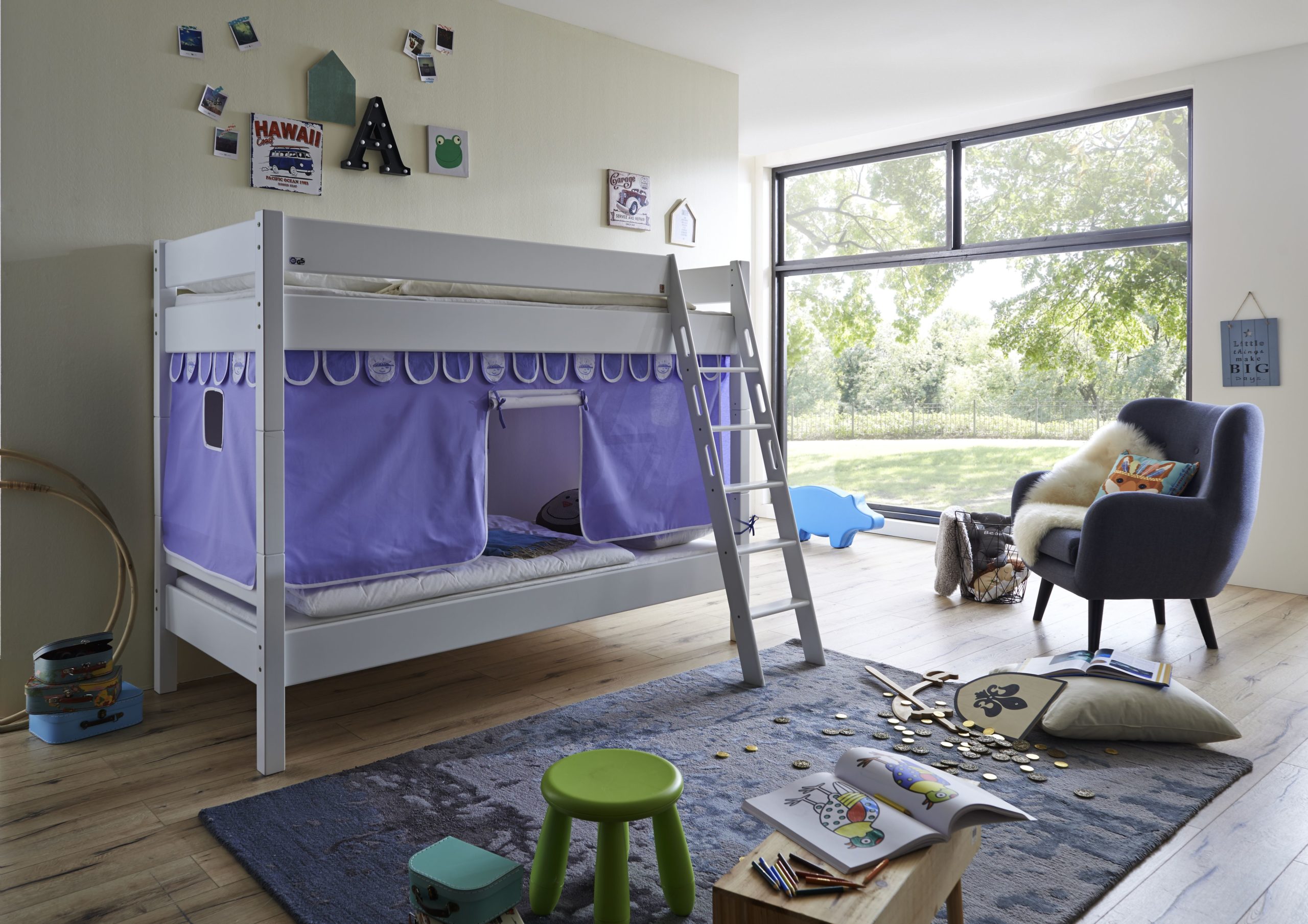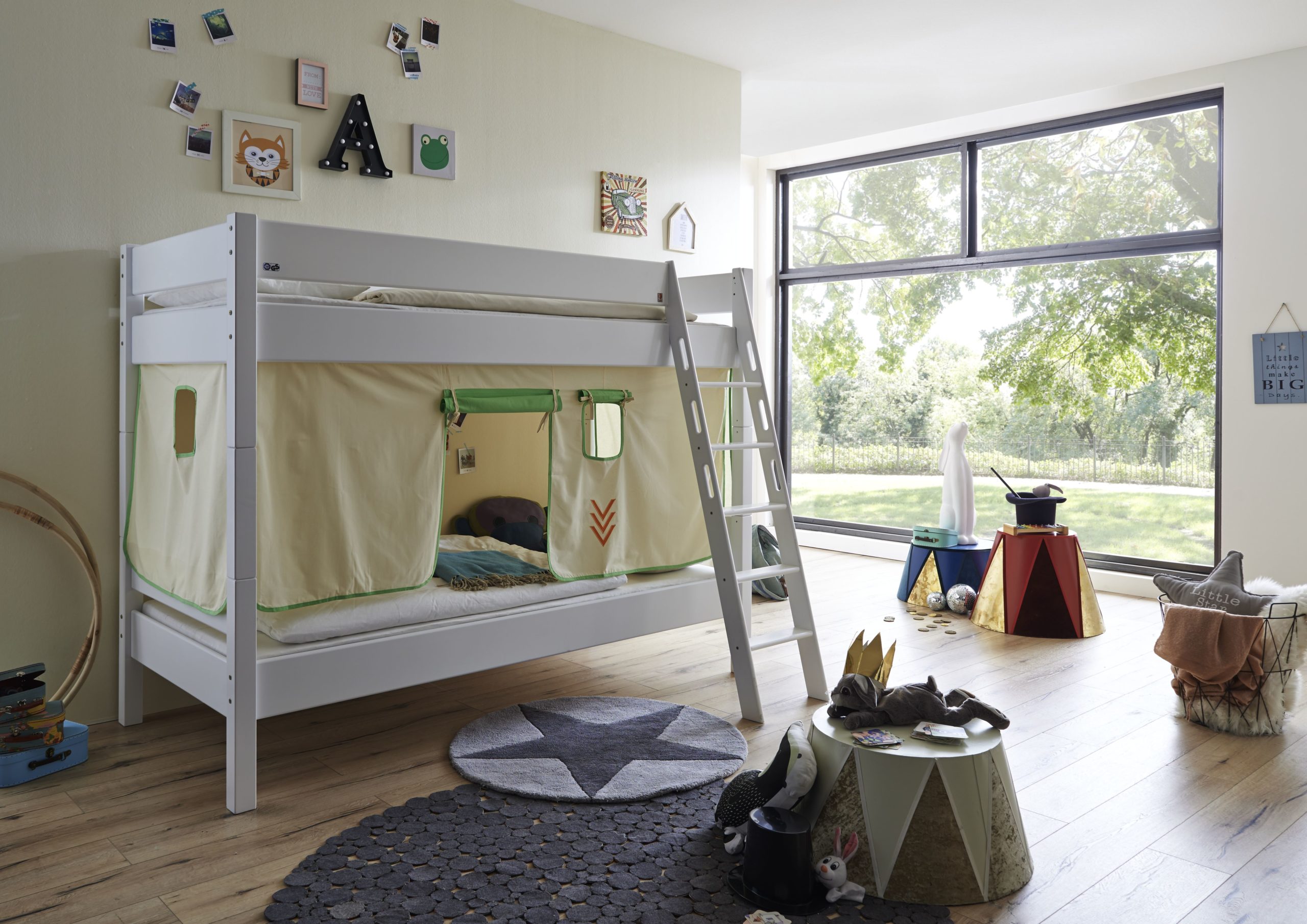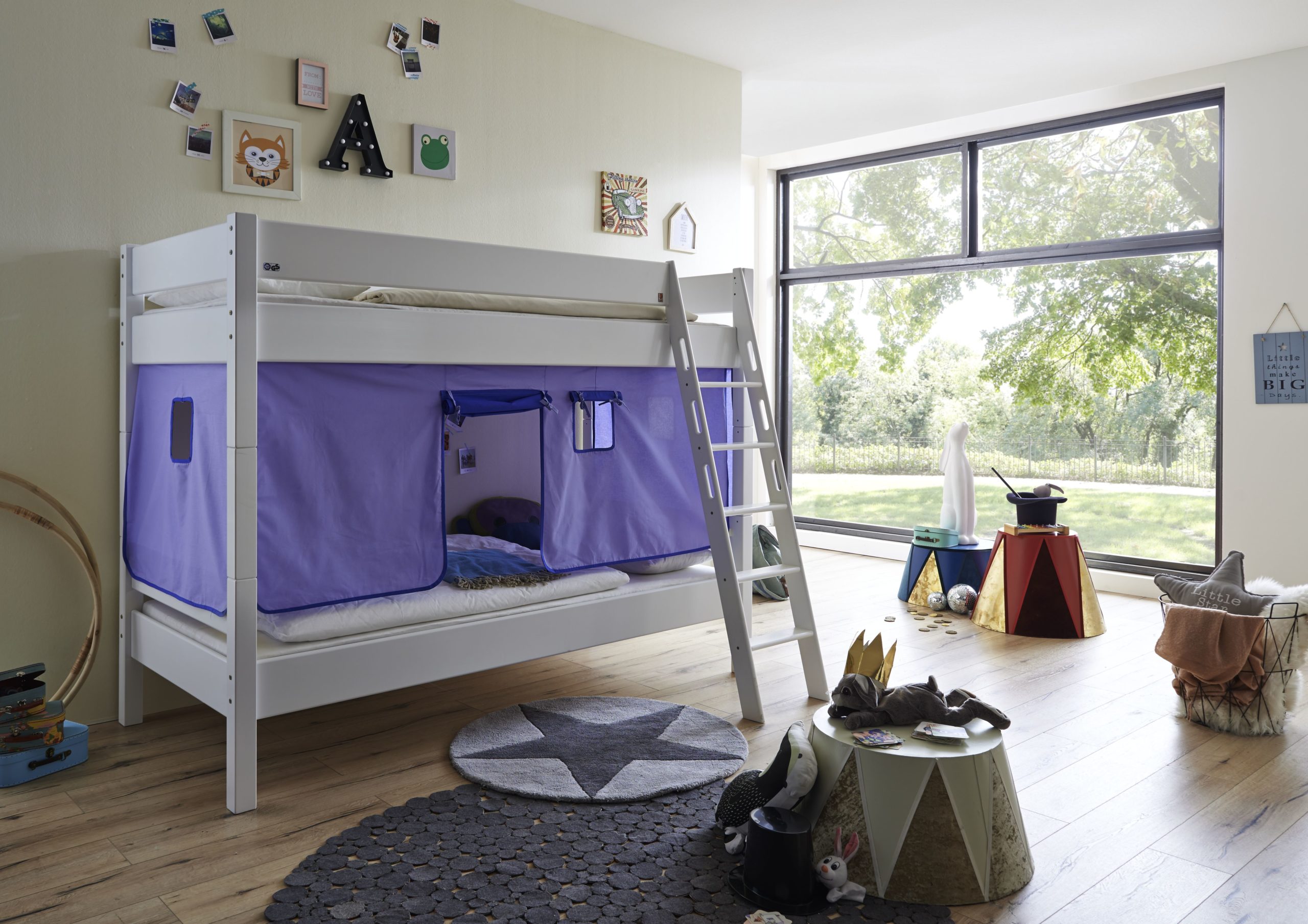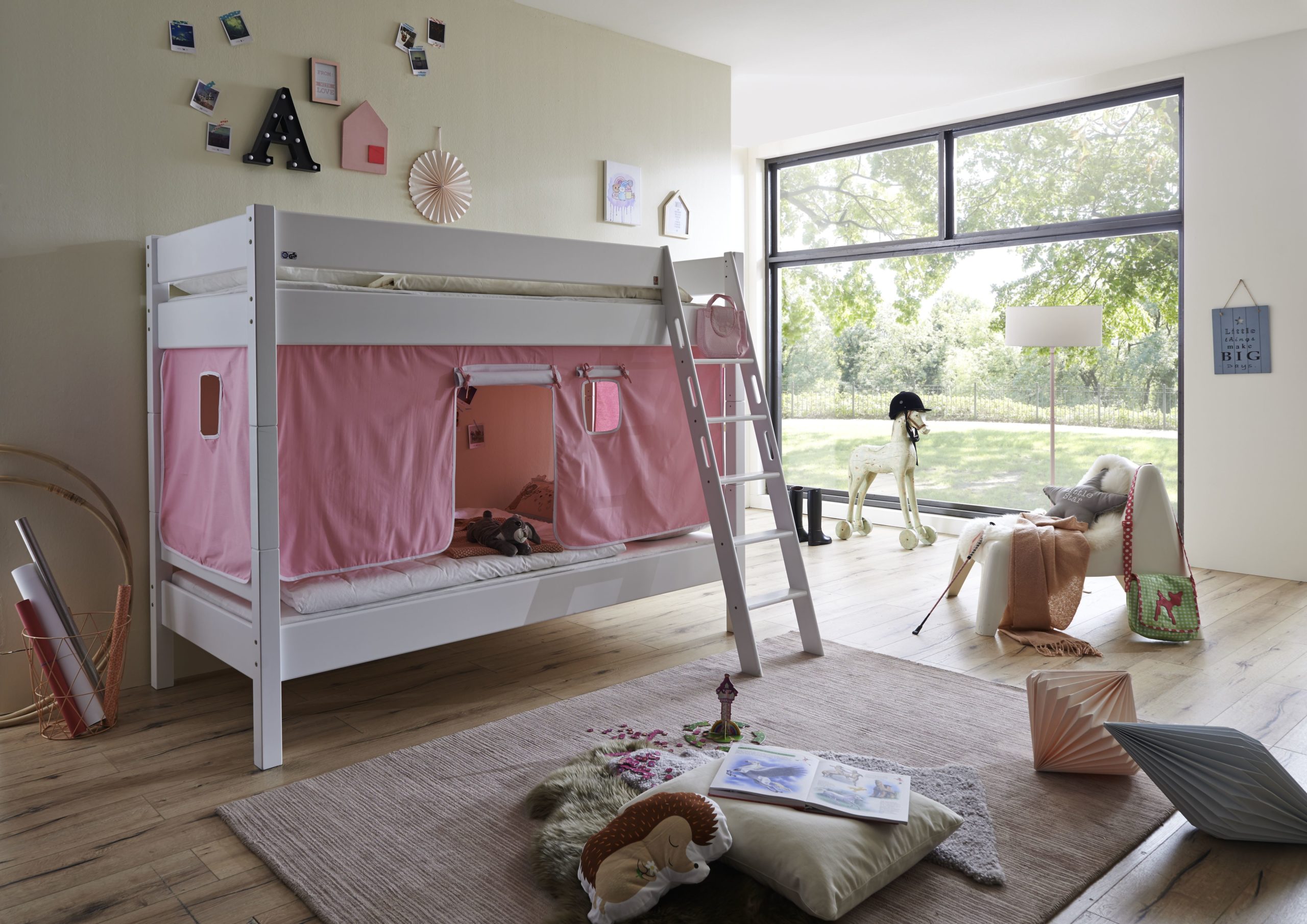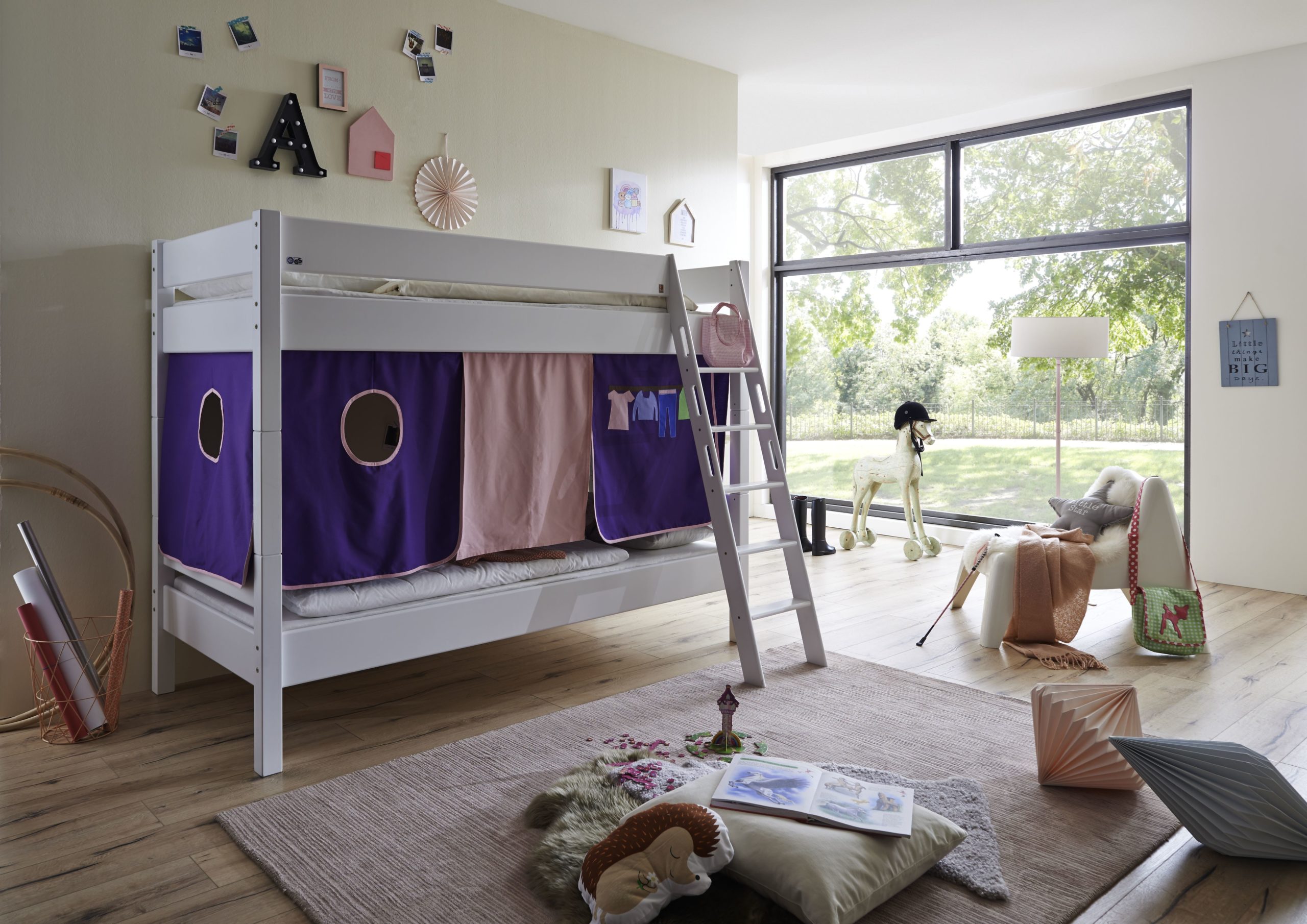Etagenbett STEFAN Buche massiv weiß lackiert mit Stoffset