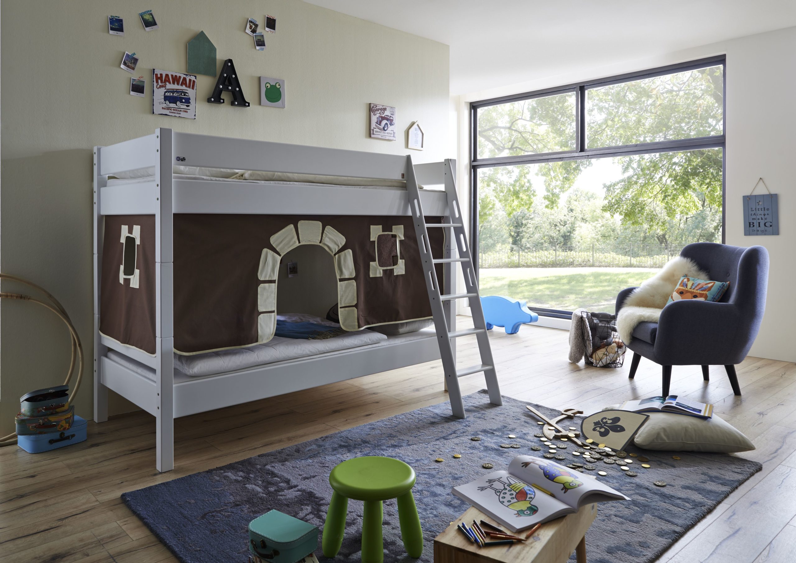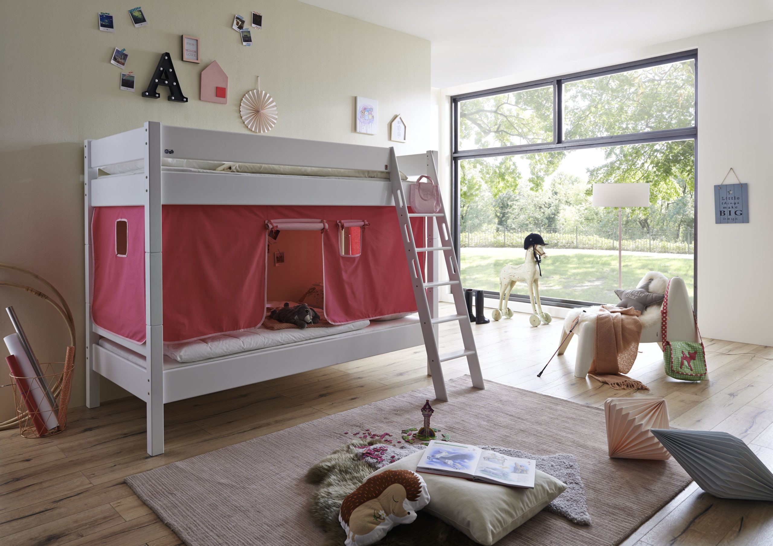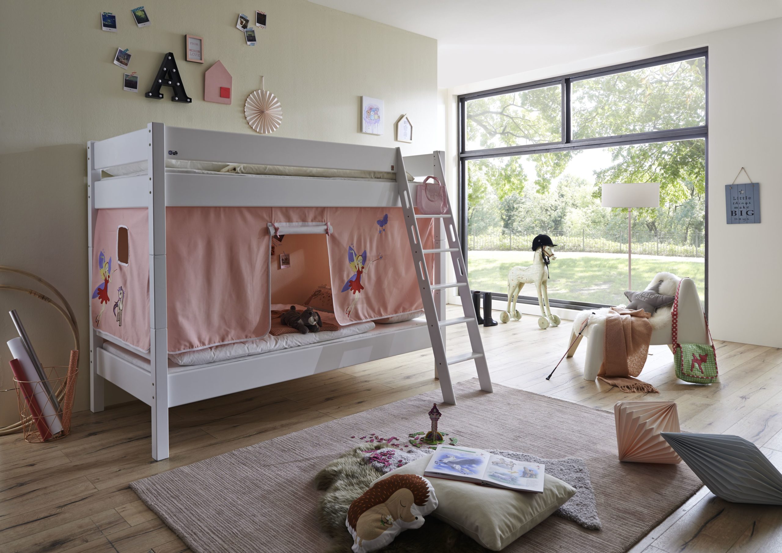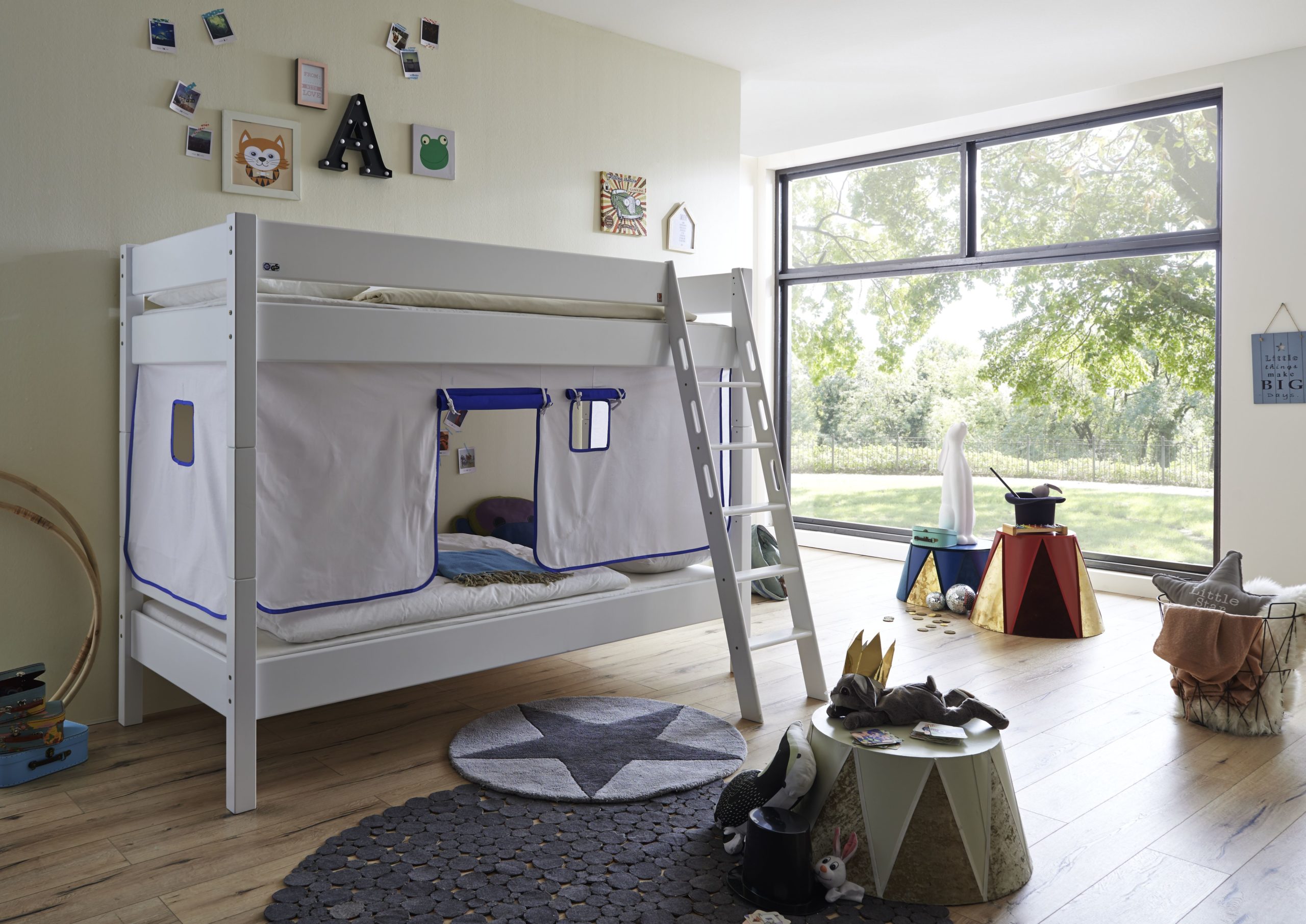 Etagenbett STEFAN Buche massiv weiß lackiert mit Stoffset