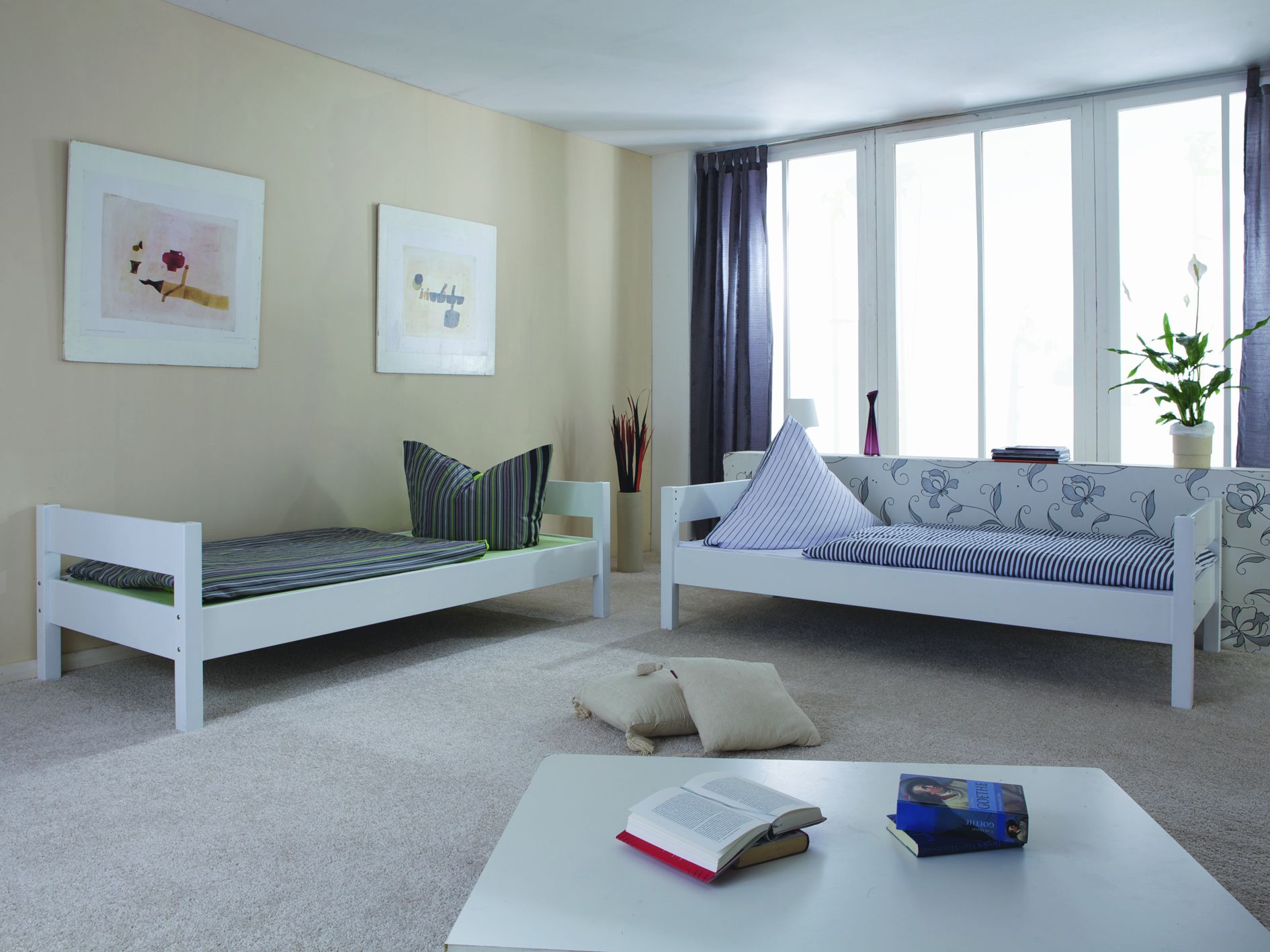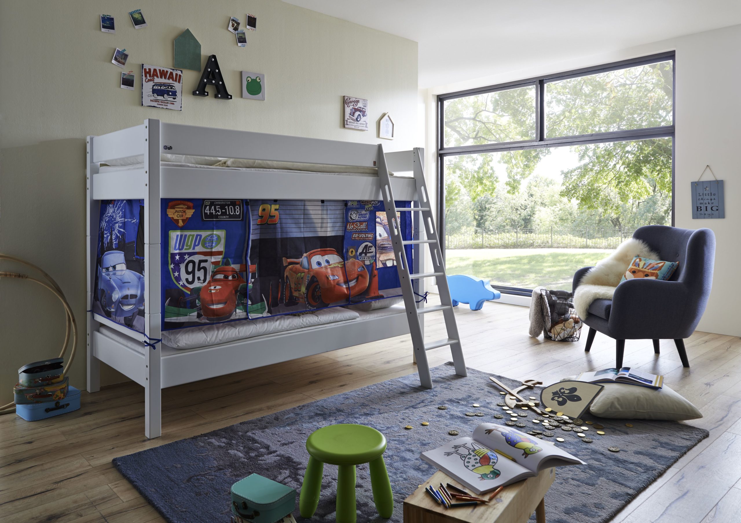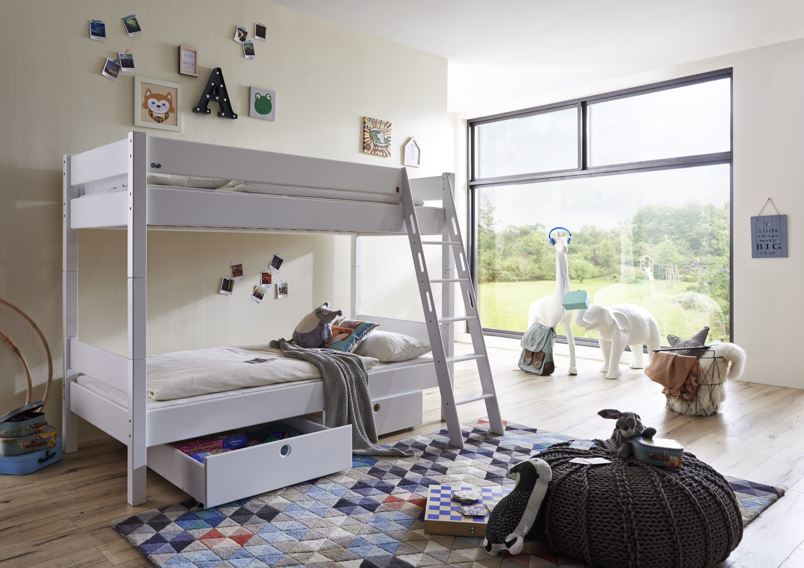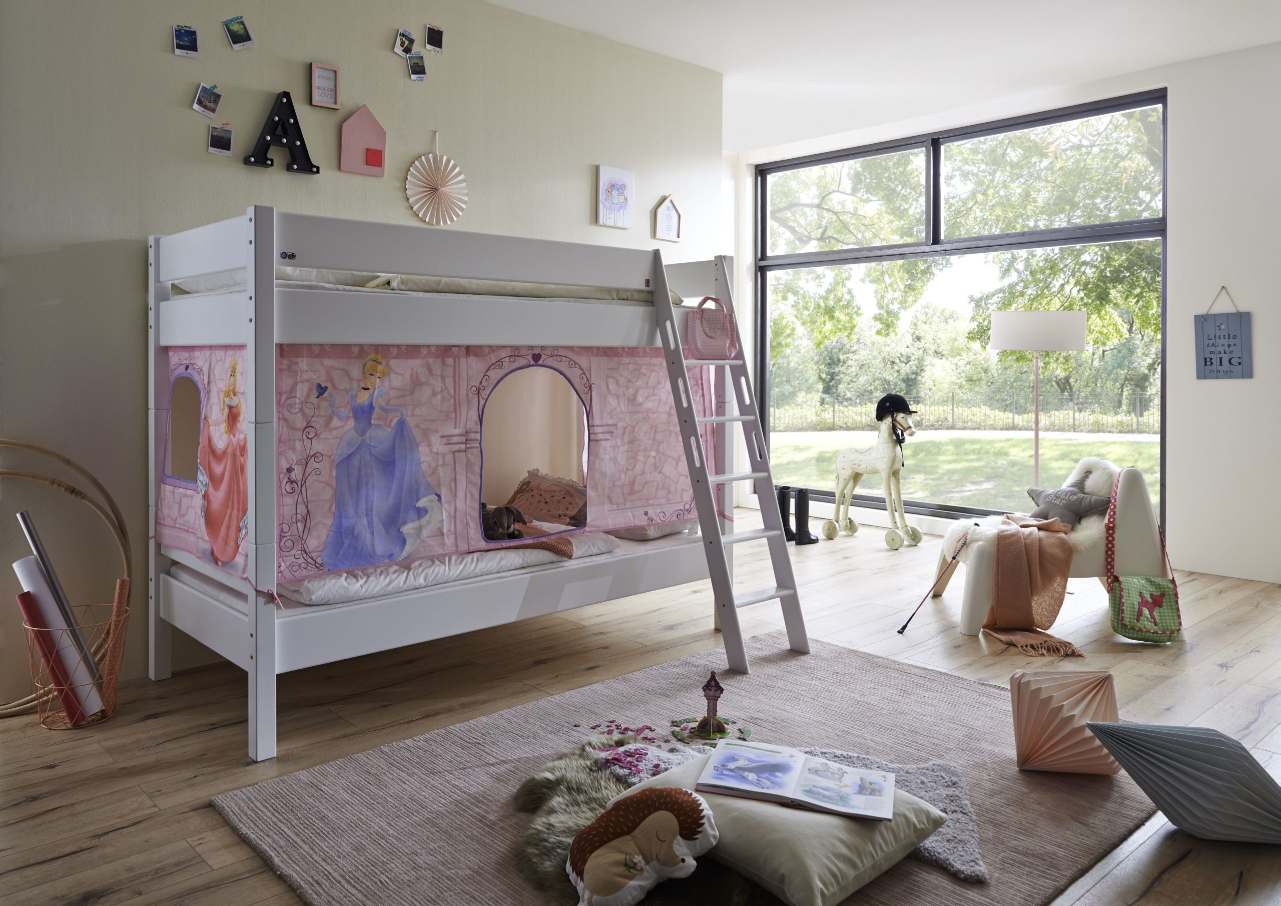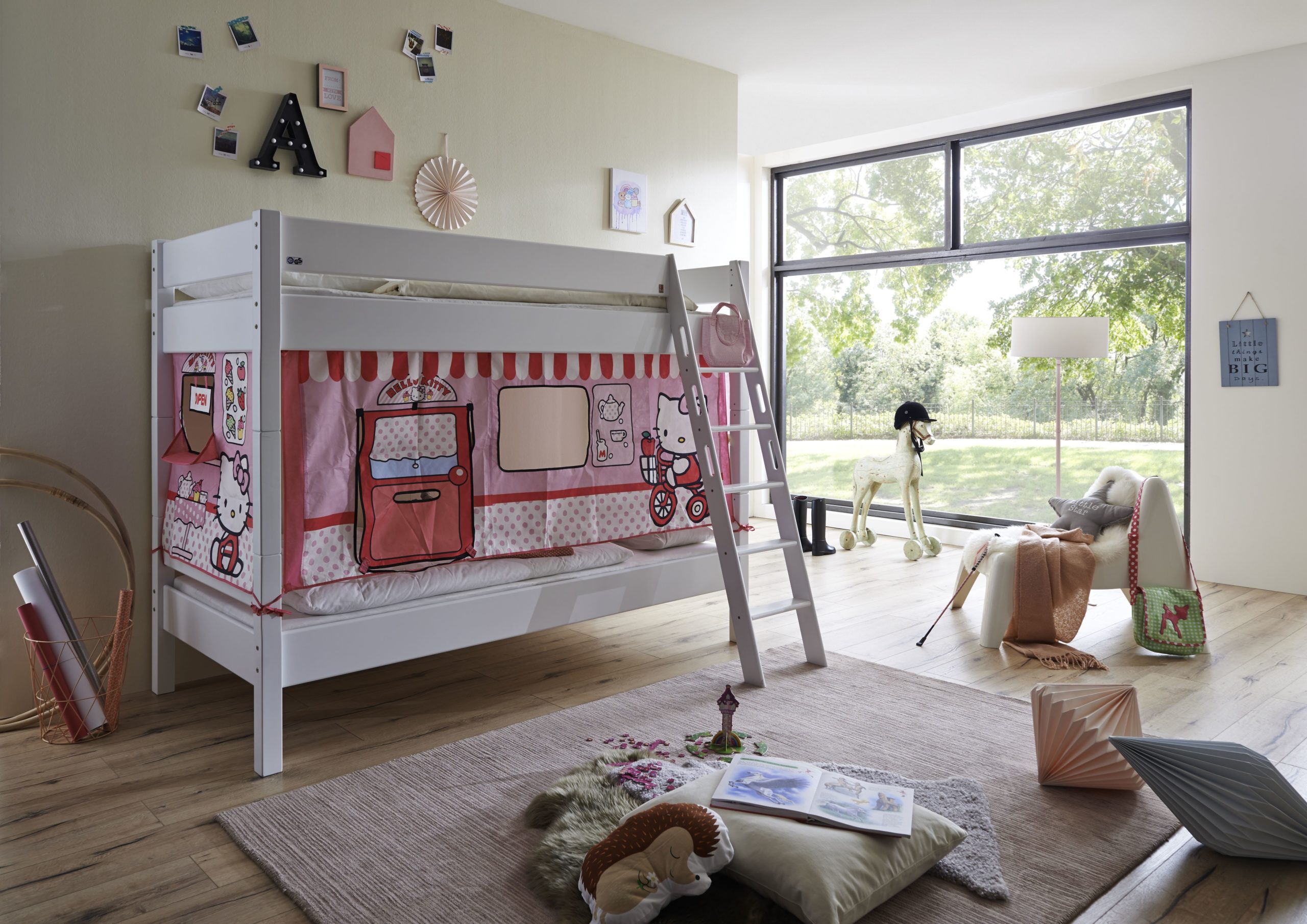 Etagenbett STEFAN Buche massiv weiß lackiert mit Stoffset