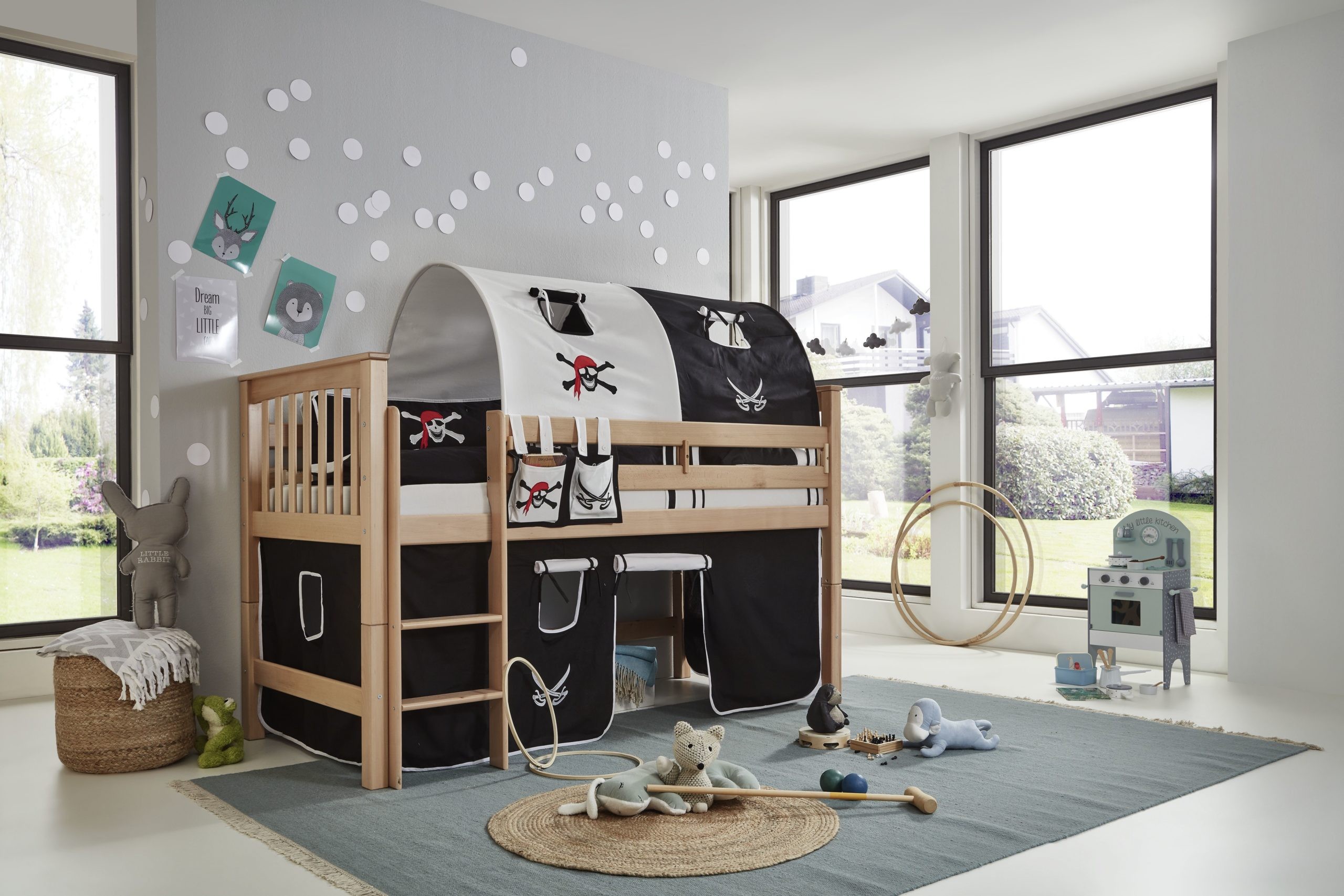 Hochbett TOLI Buche massiv Bi-Color natur und weiß lackiert
