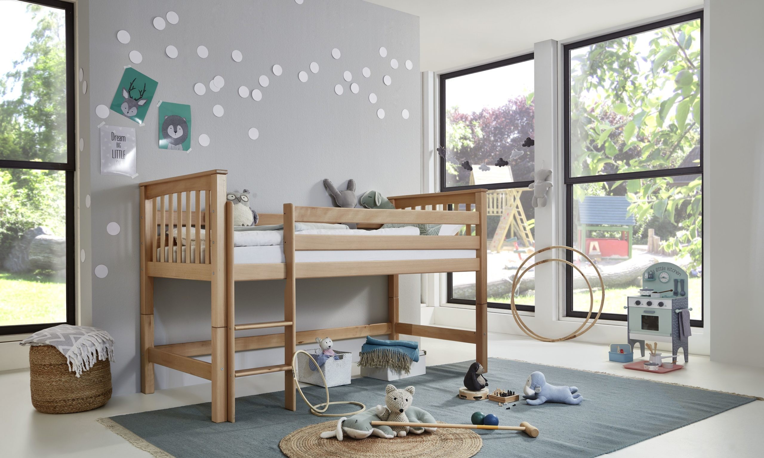 Halbhohes Bett Kick 90 x 200 mit Lattenrost Buche massiv natur lackiert