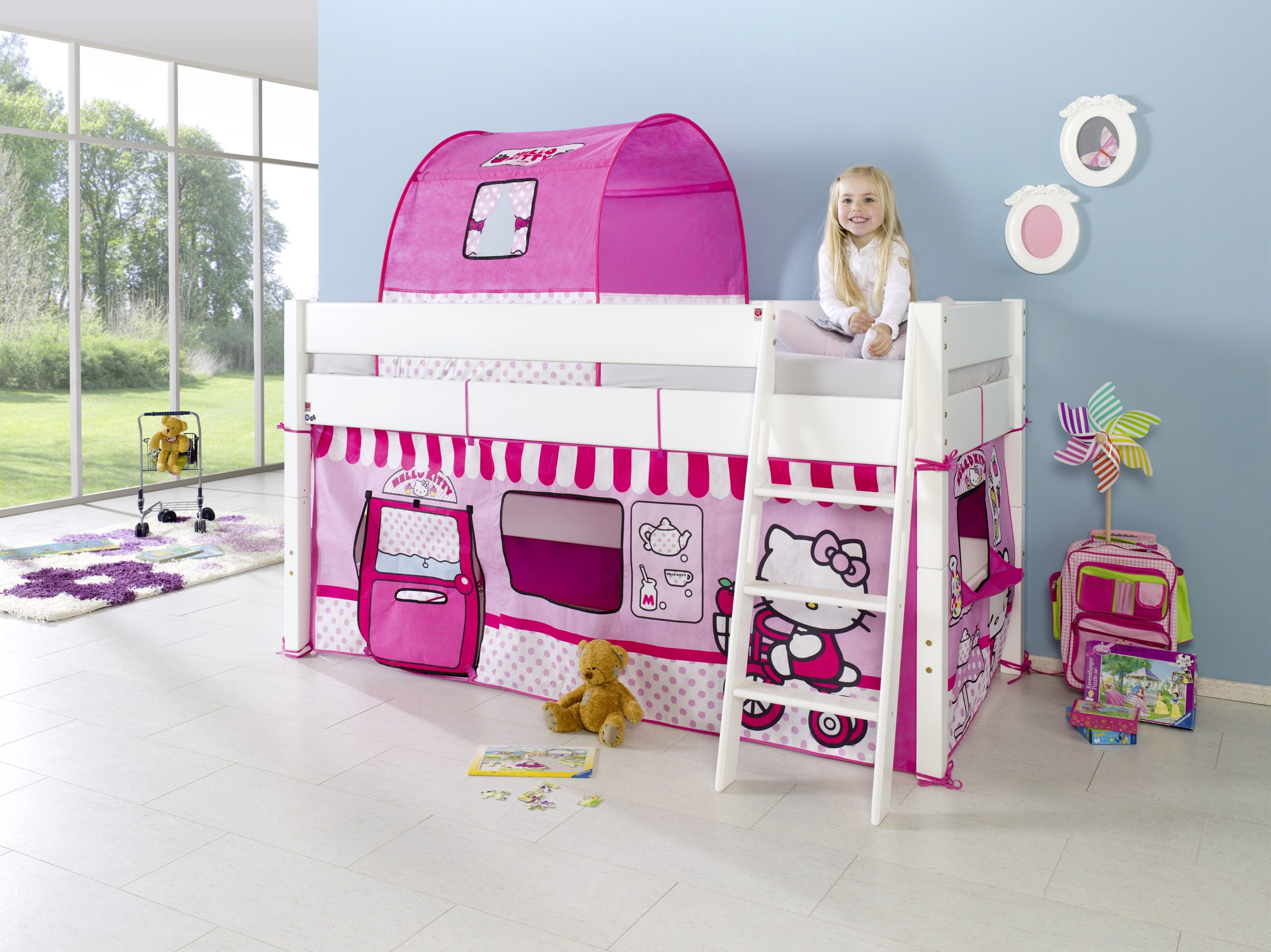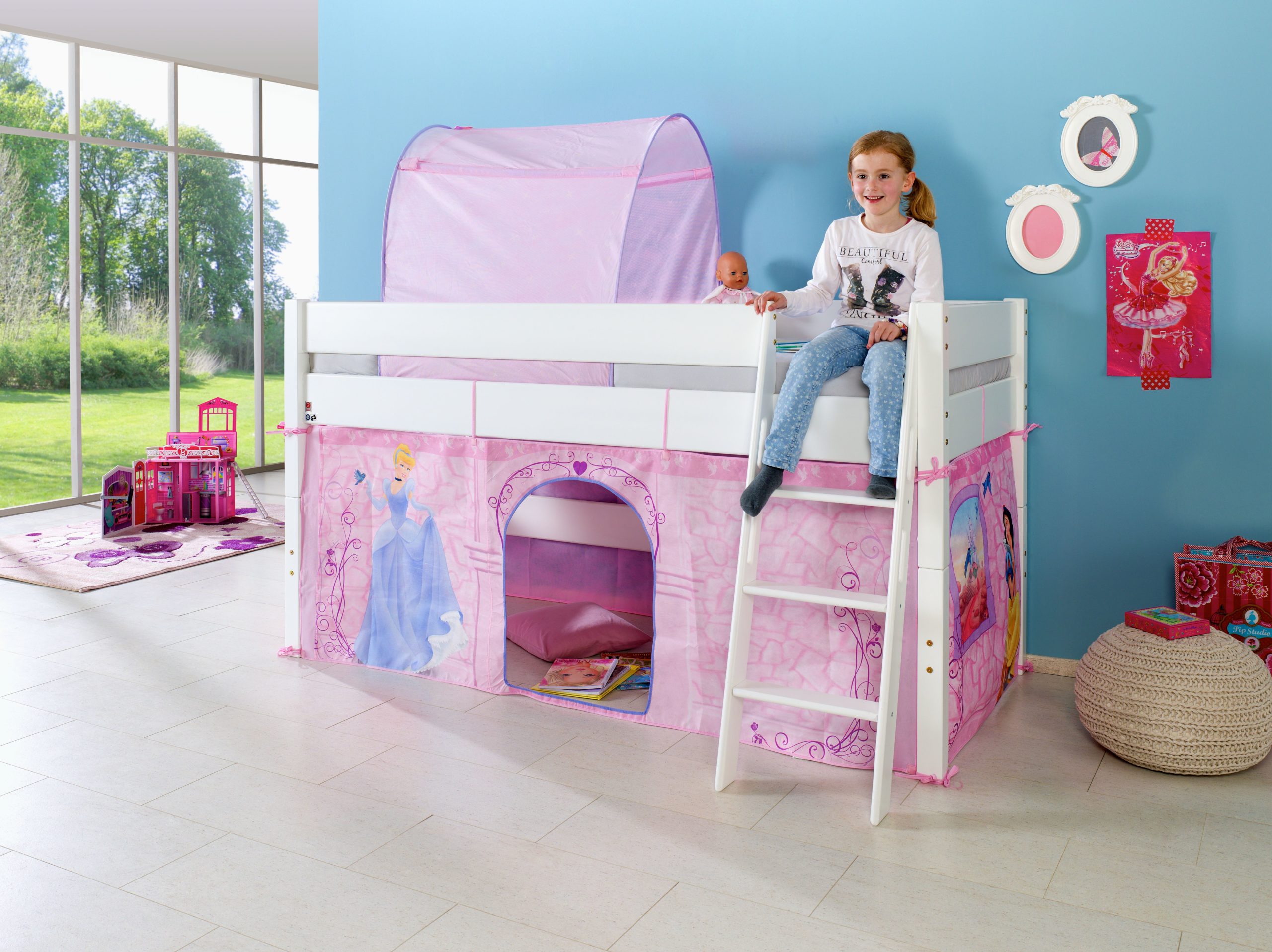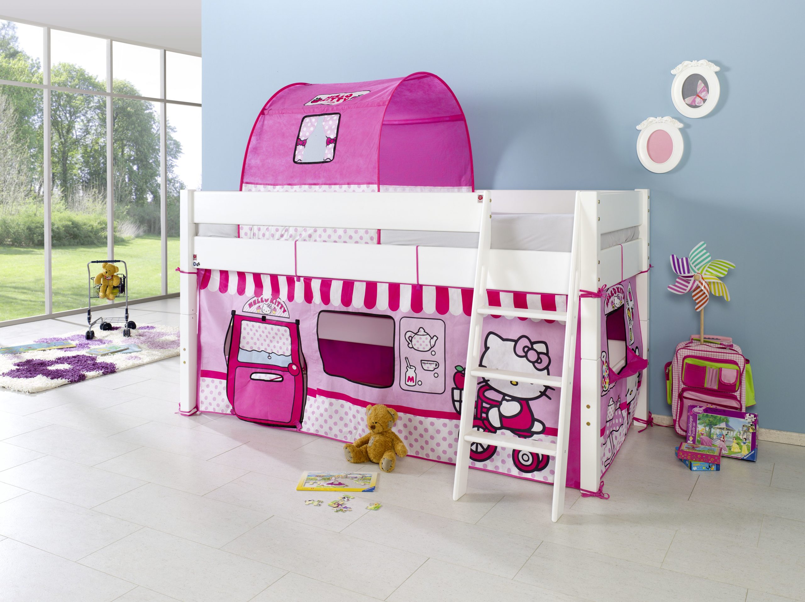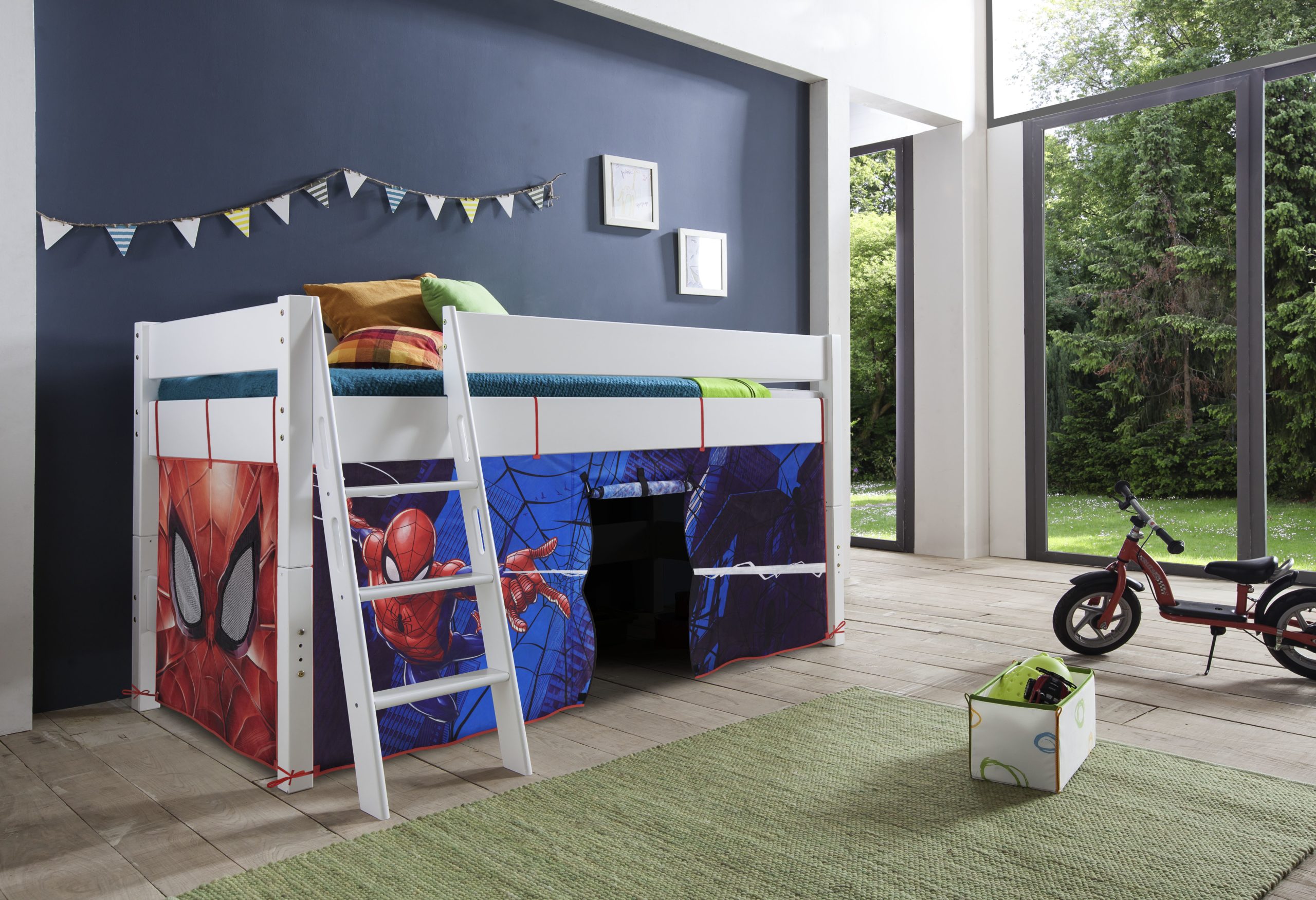 Hochbett KIM Buche massiv weiß lackiert mit Textil-Set