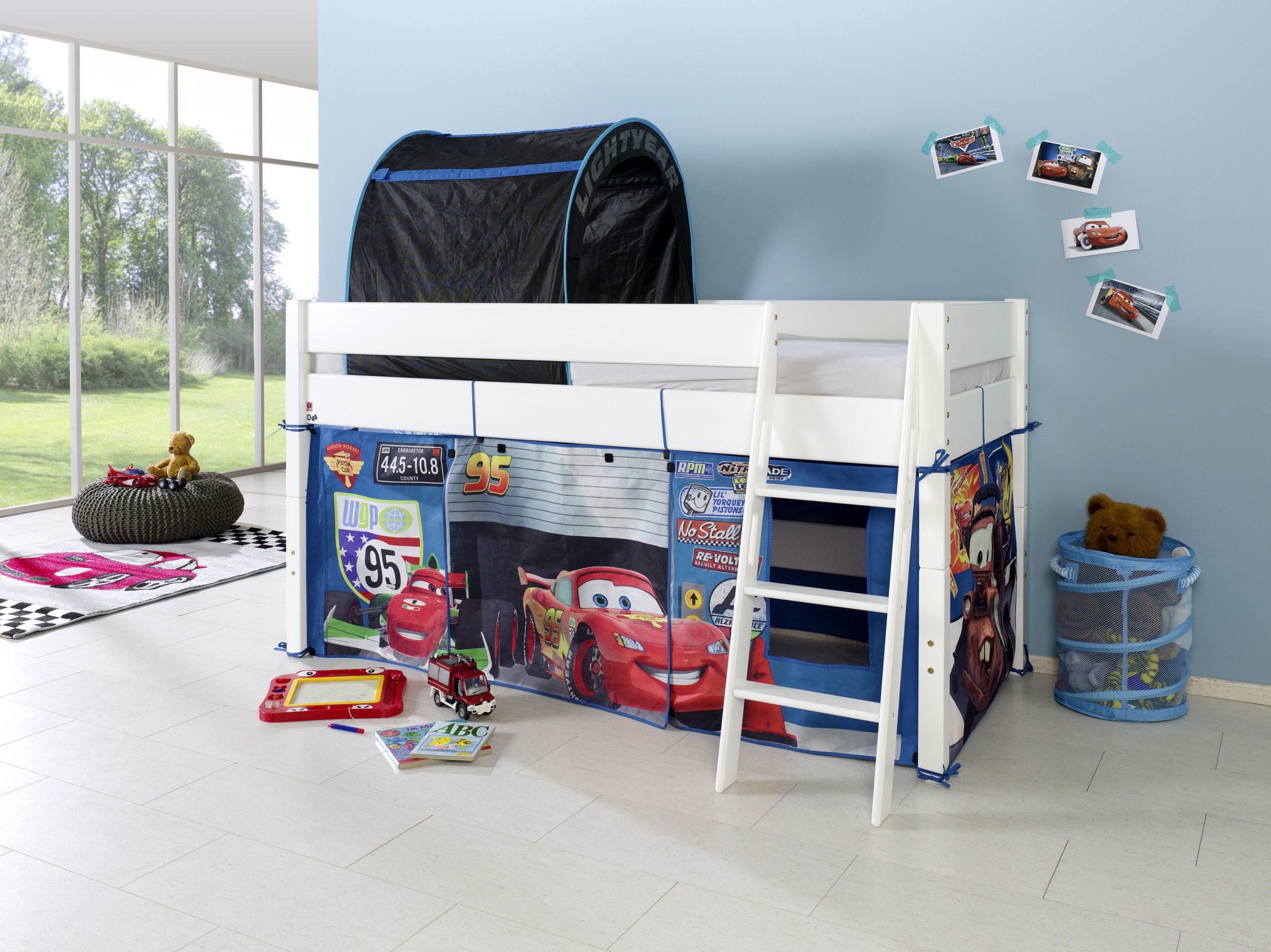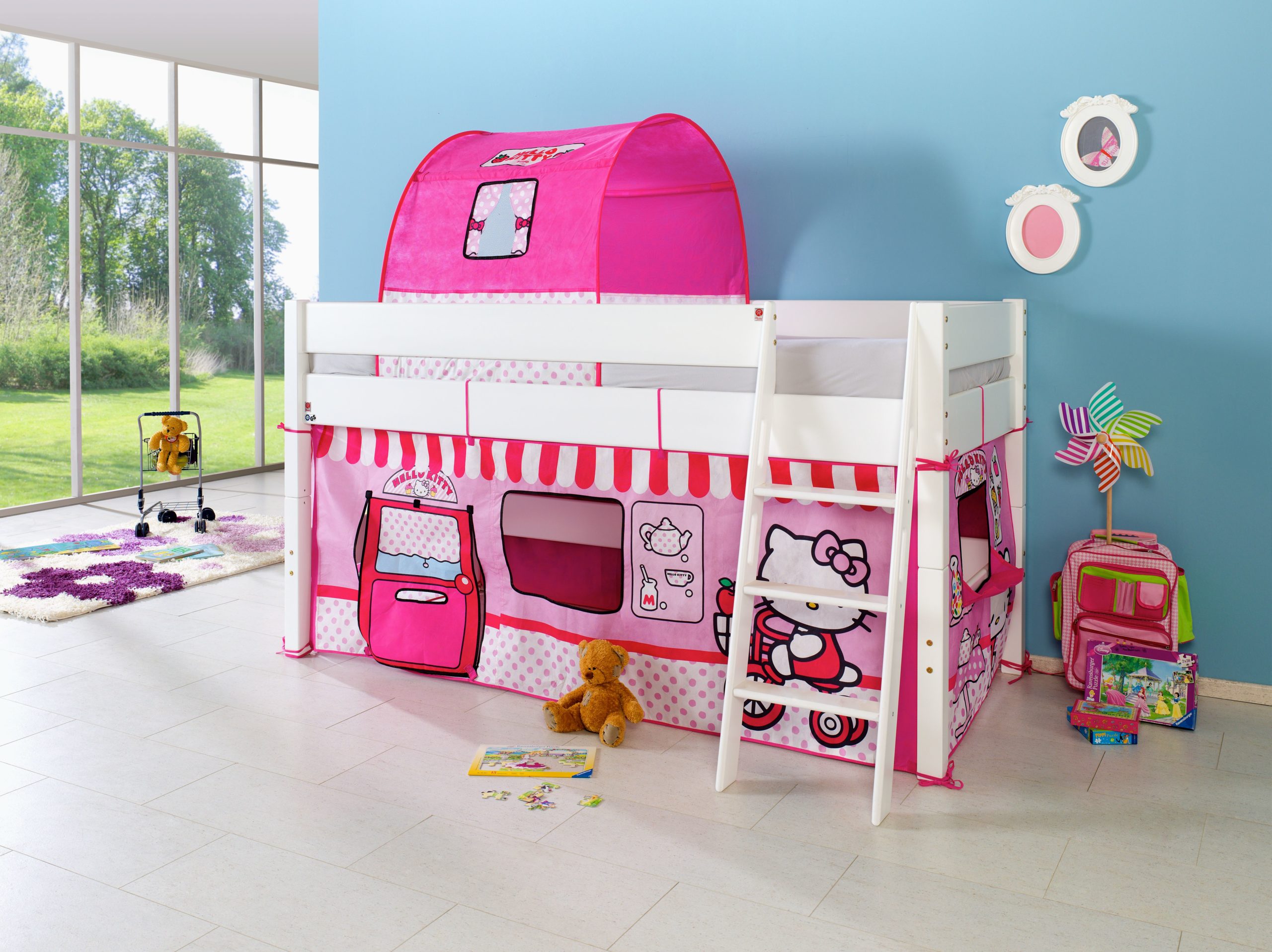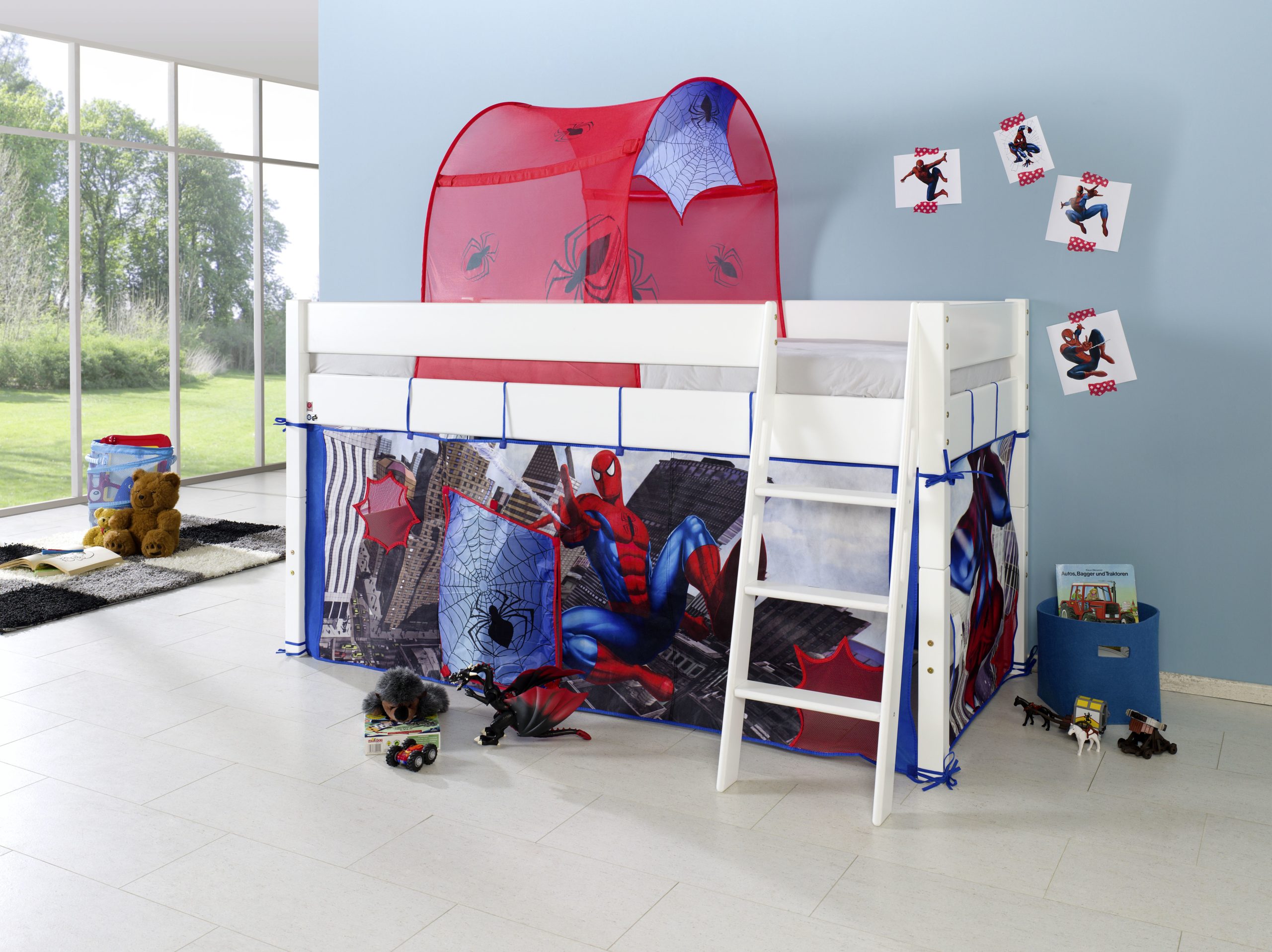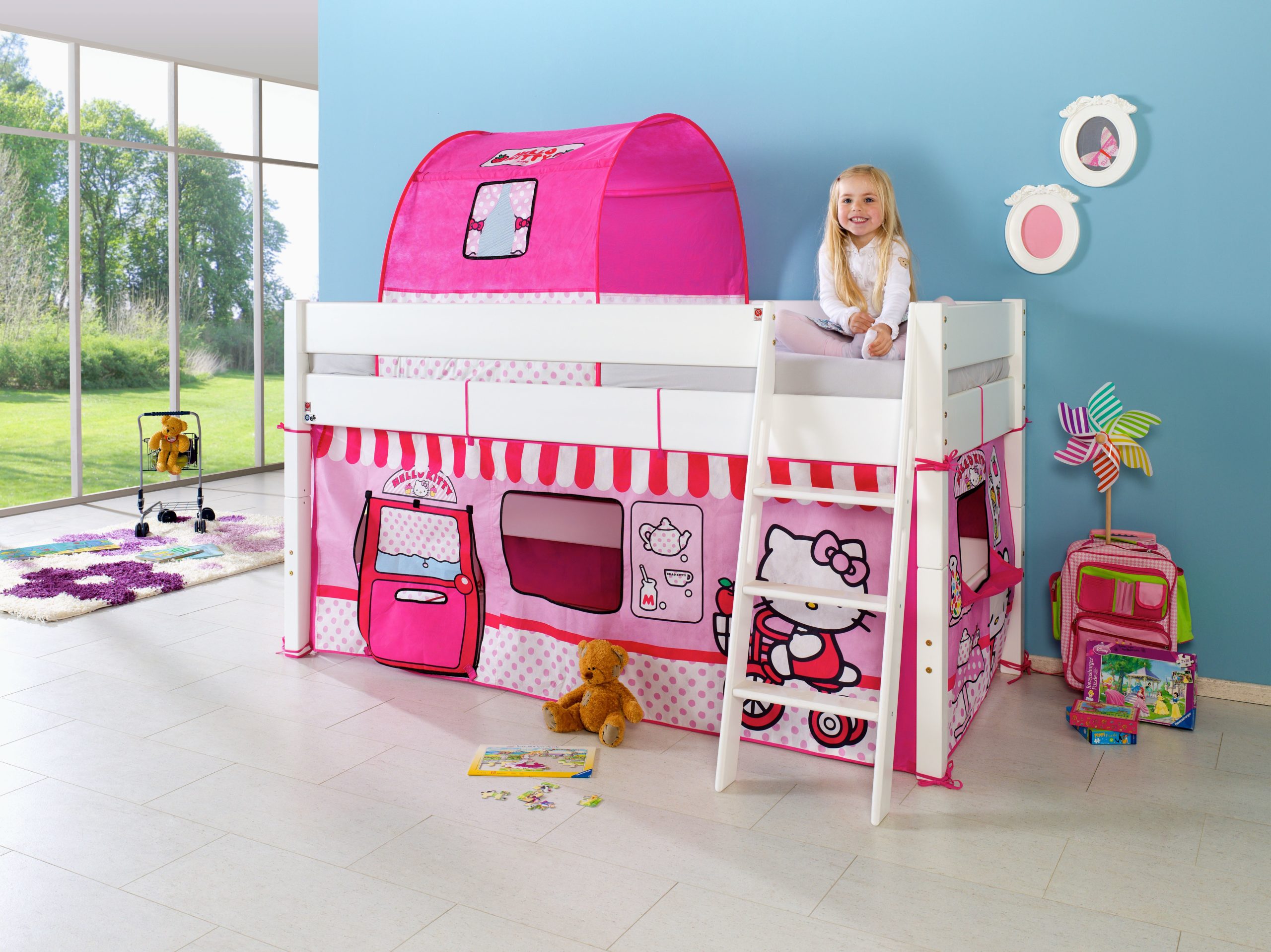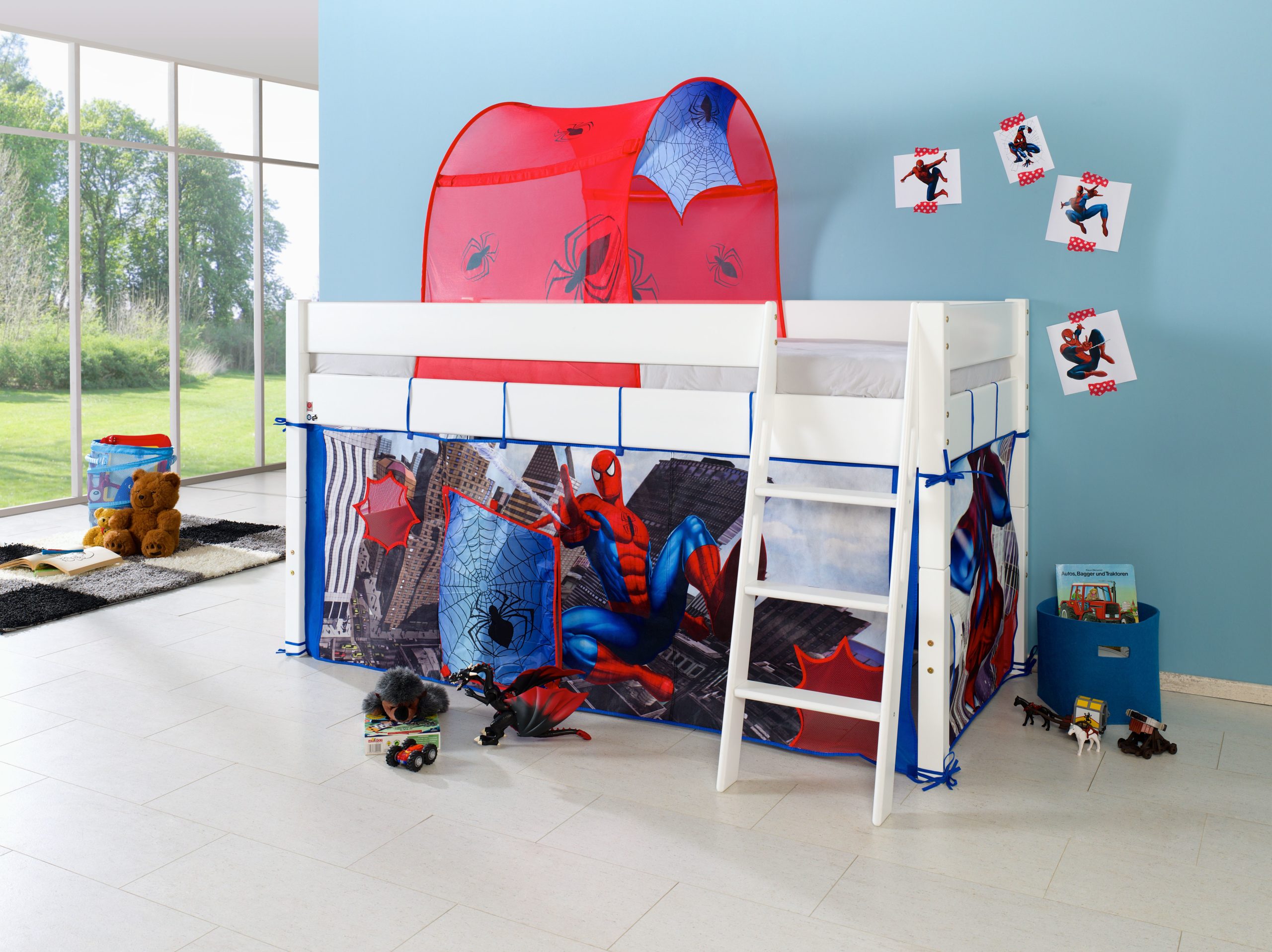 Hochbett KIM Buche massiv weiß lackiert mit Textil-Set