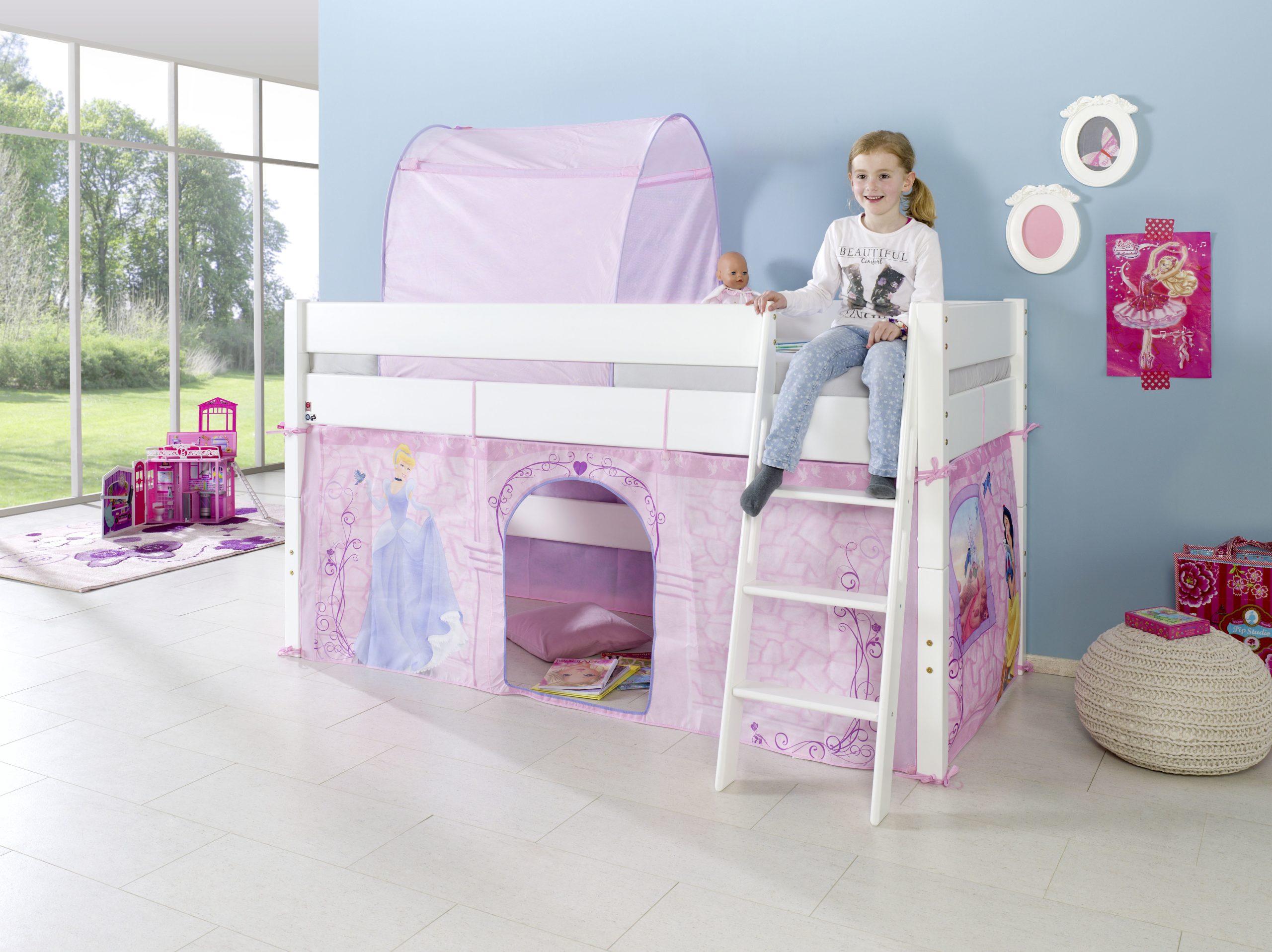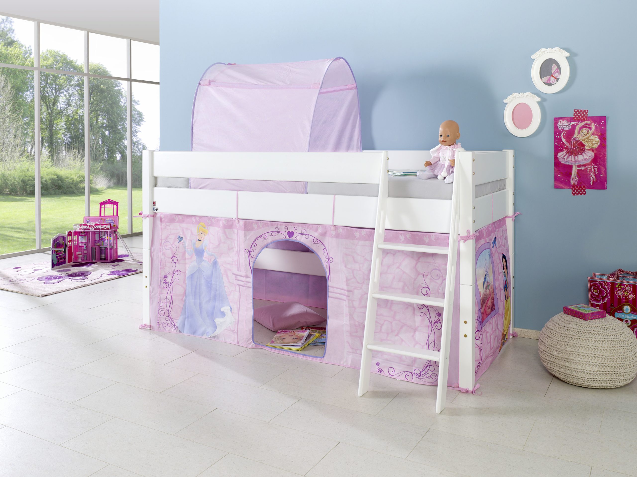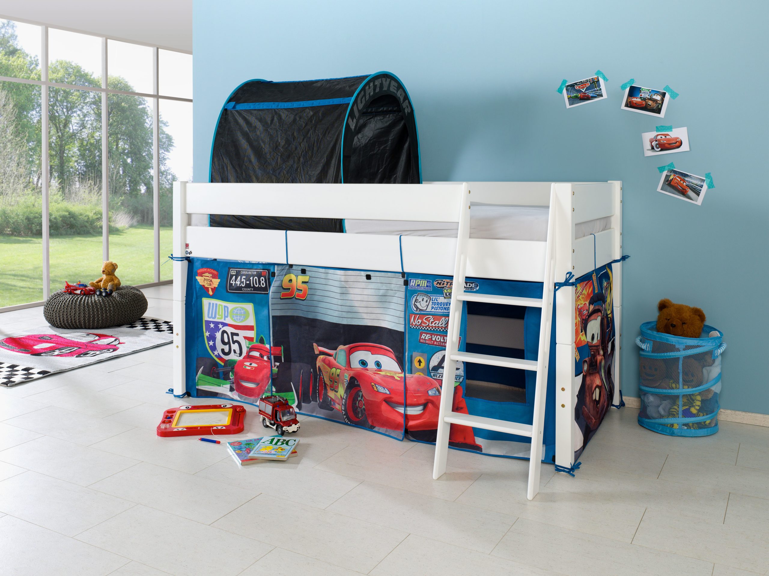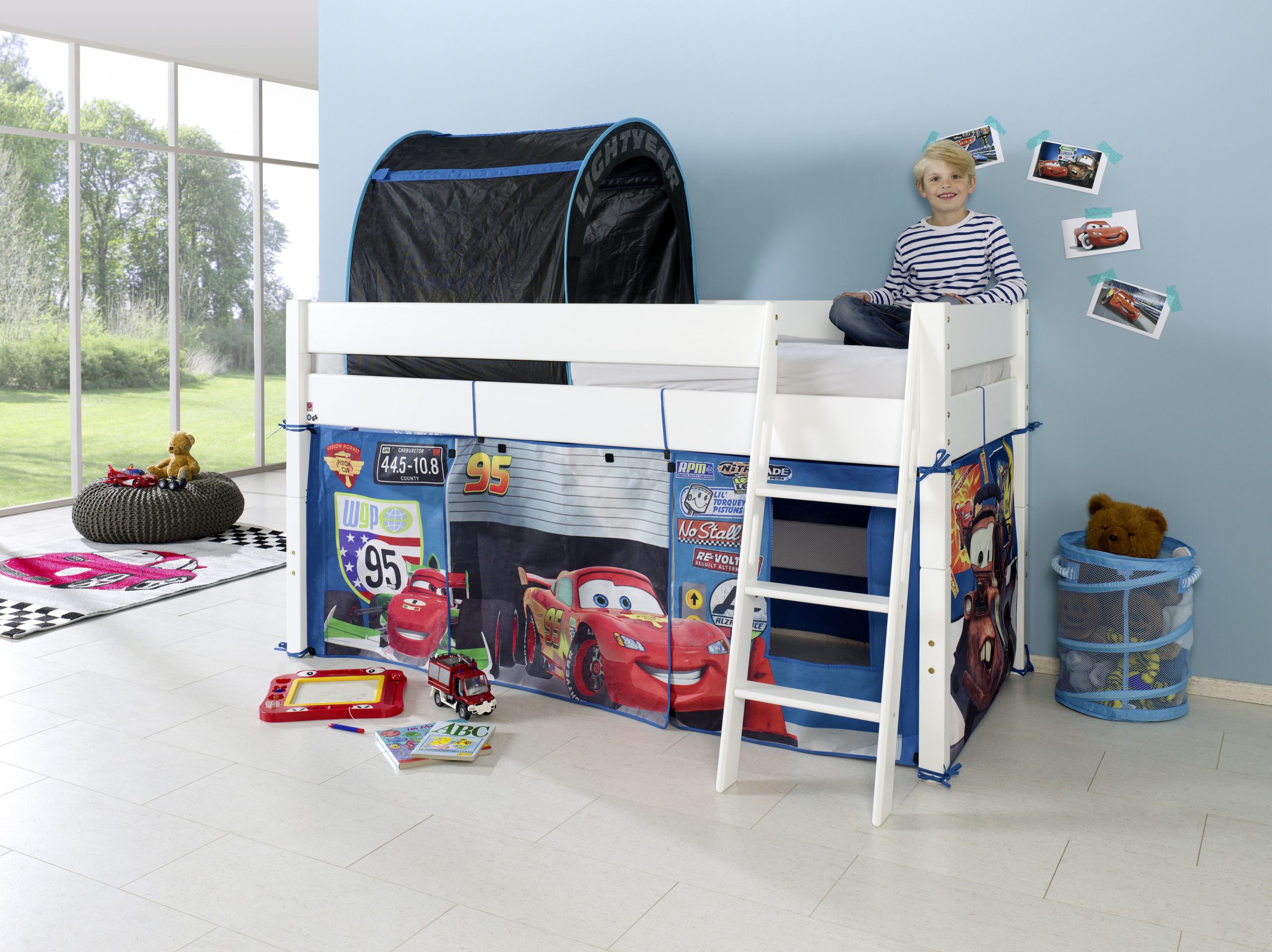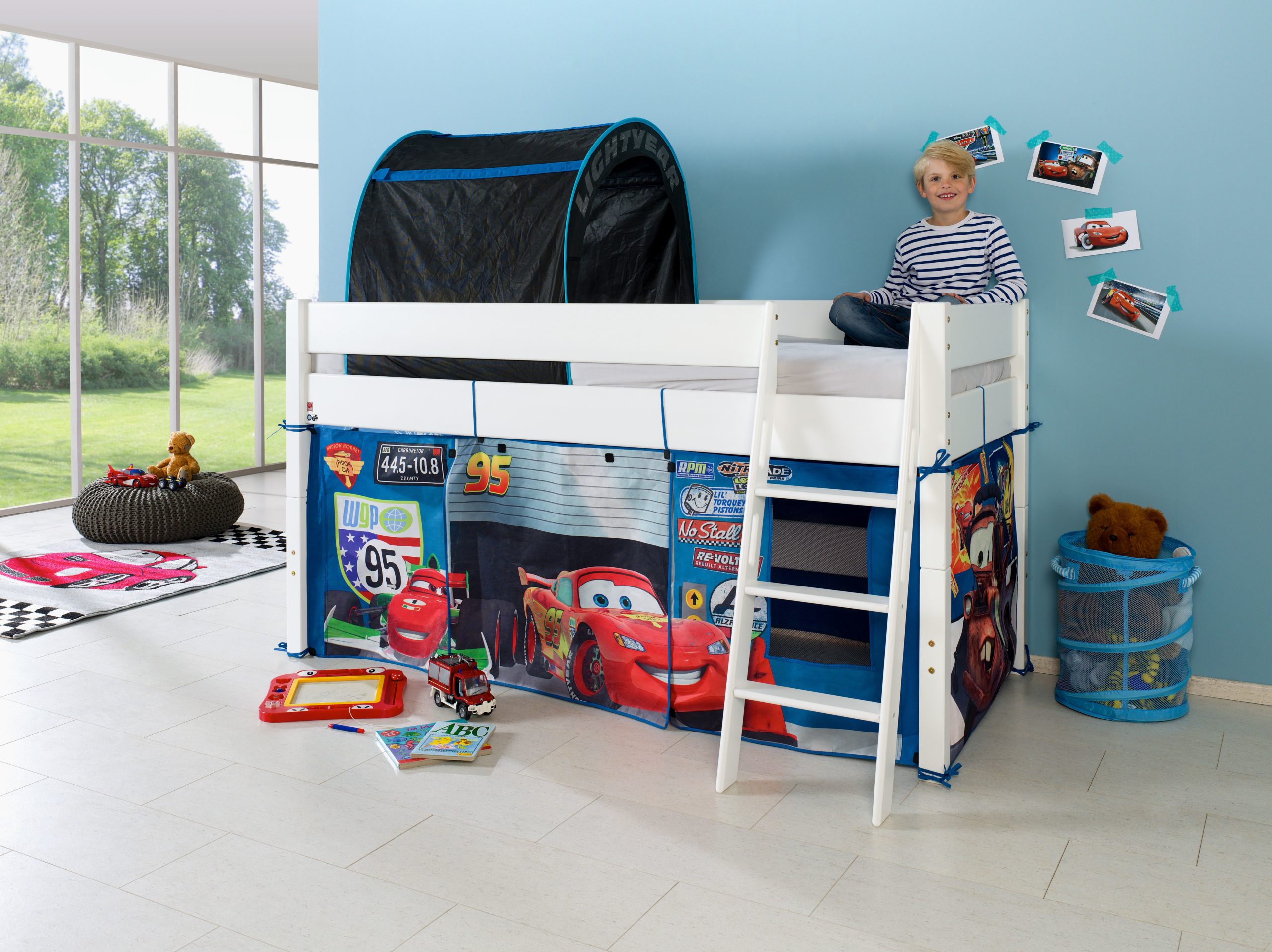 Hochbett KIM Buche massiv weiß lackiert mit Textil-Set