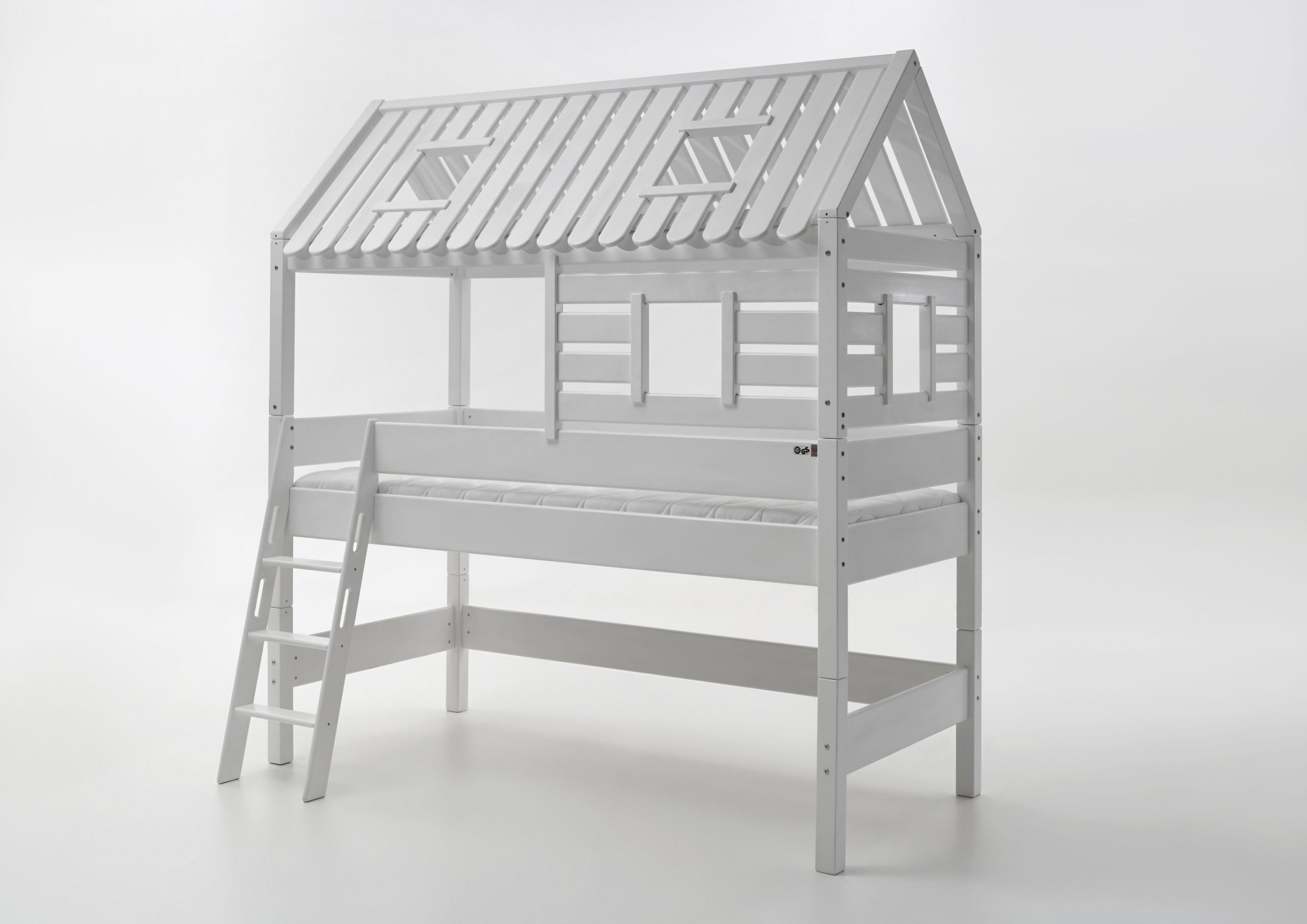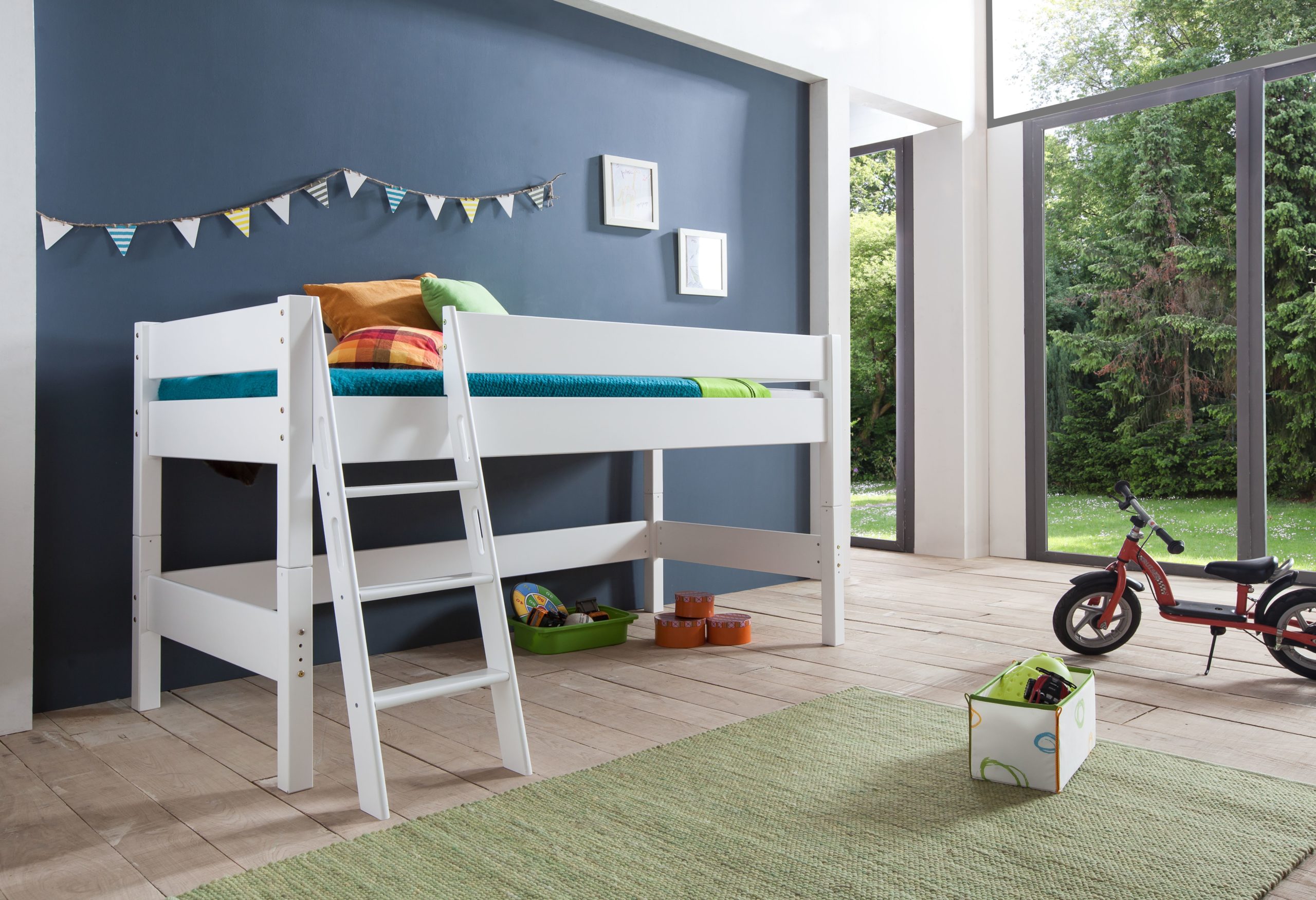 Halbhohes Bett Kick 90 x 200 mit Lattenrost Buche massiv weiß lackiert