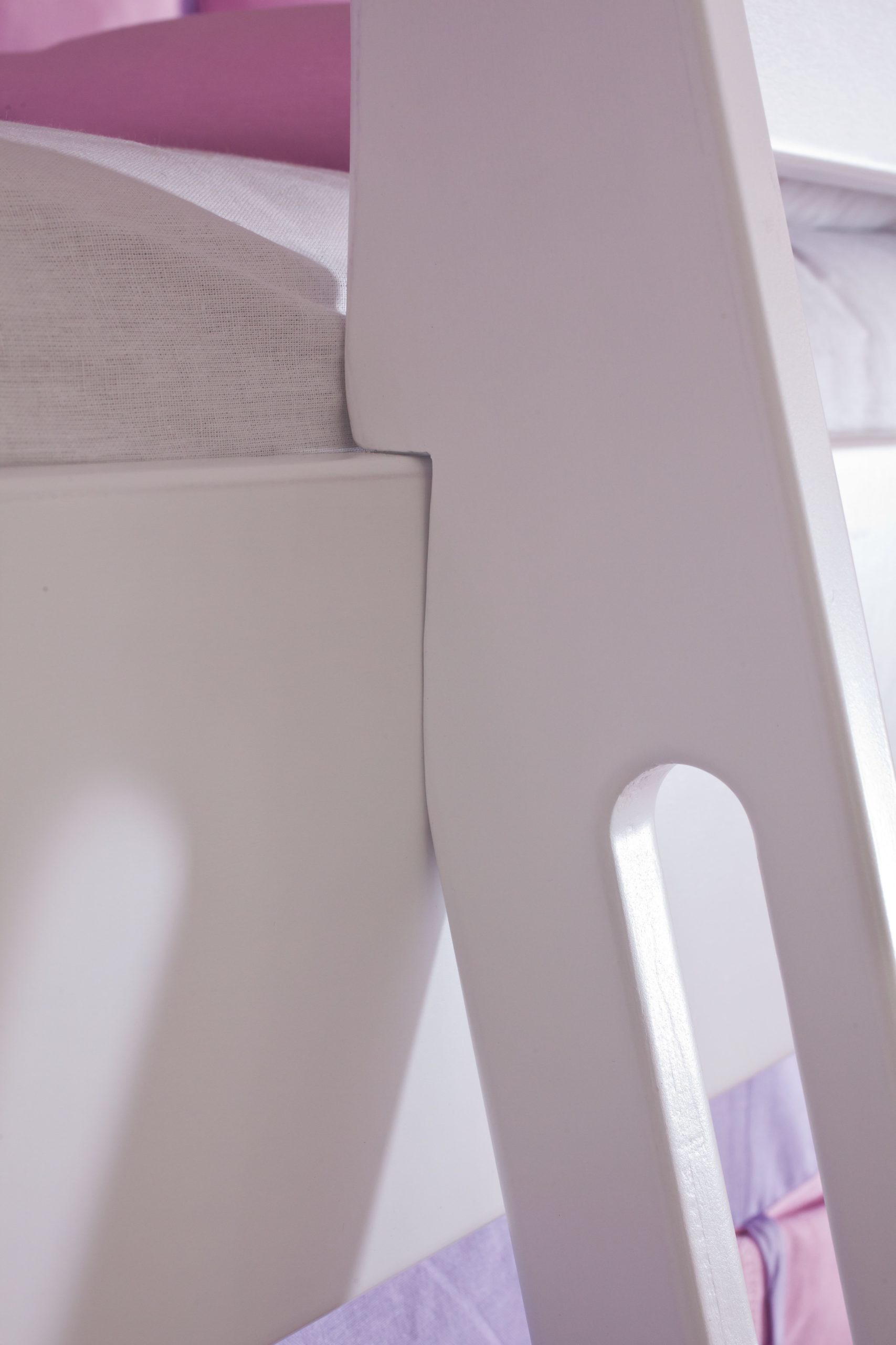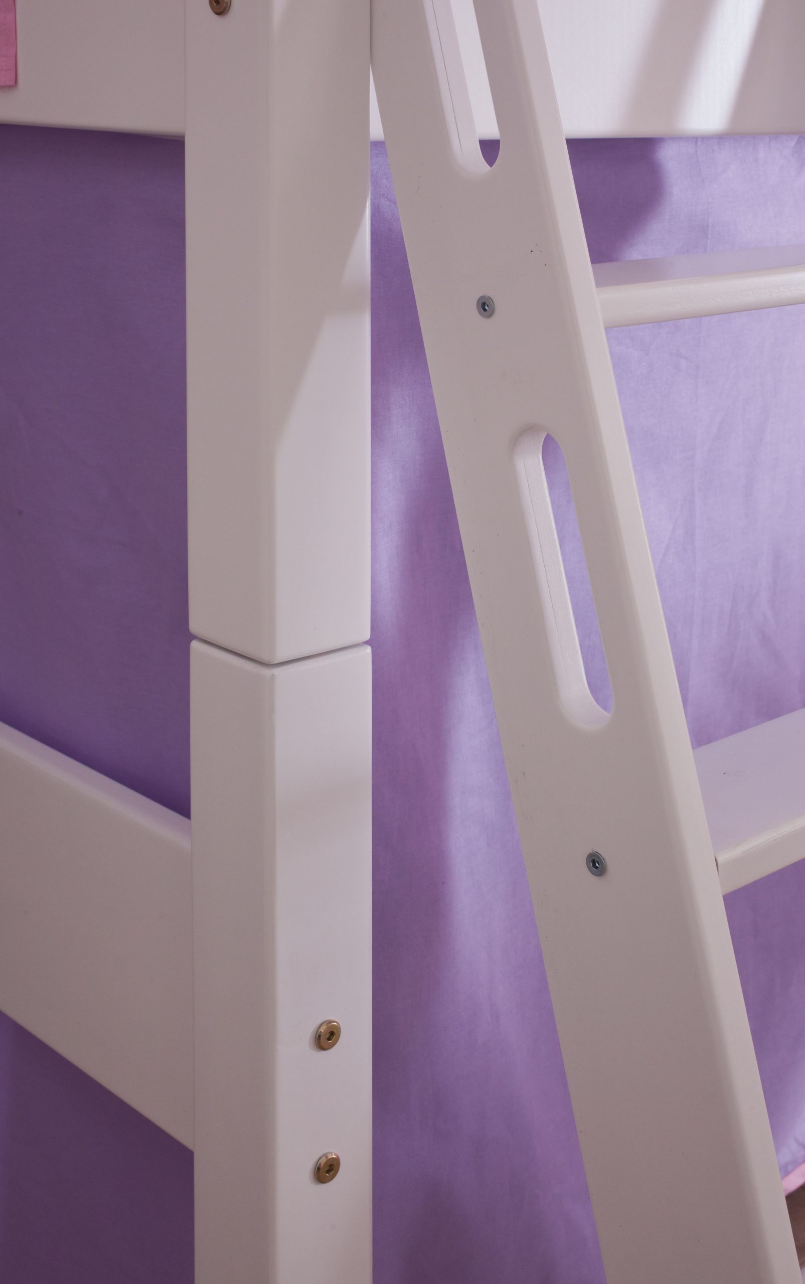 Halbhohes Spielbett ALEX mit Rutsche,Turm und optional Tunnel Buche massiv weiß lackiert