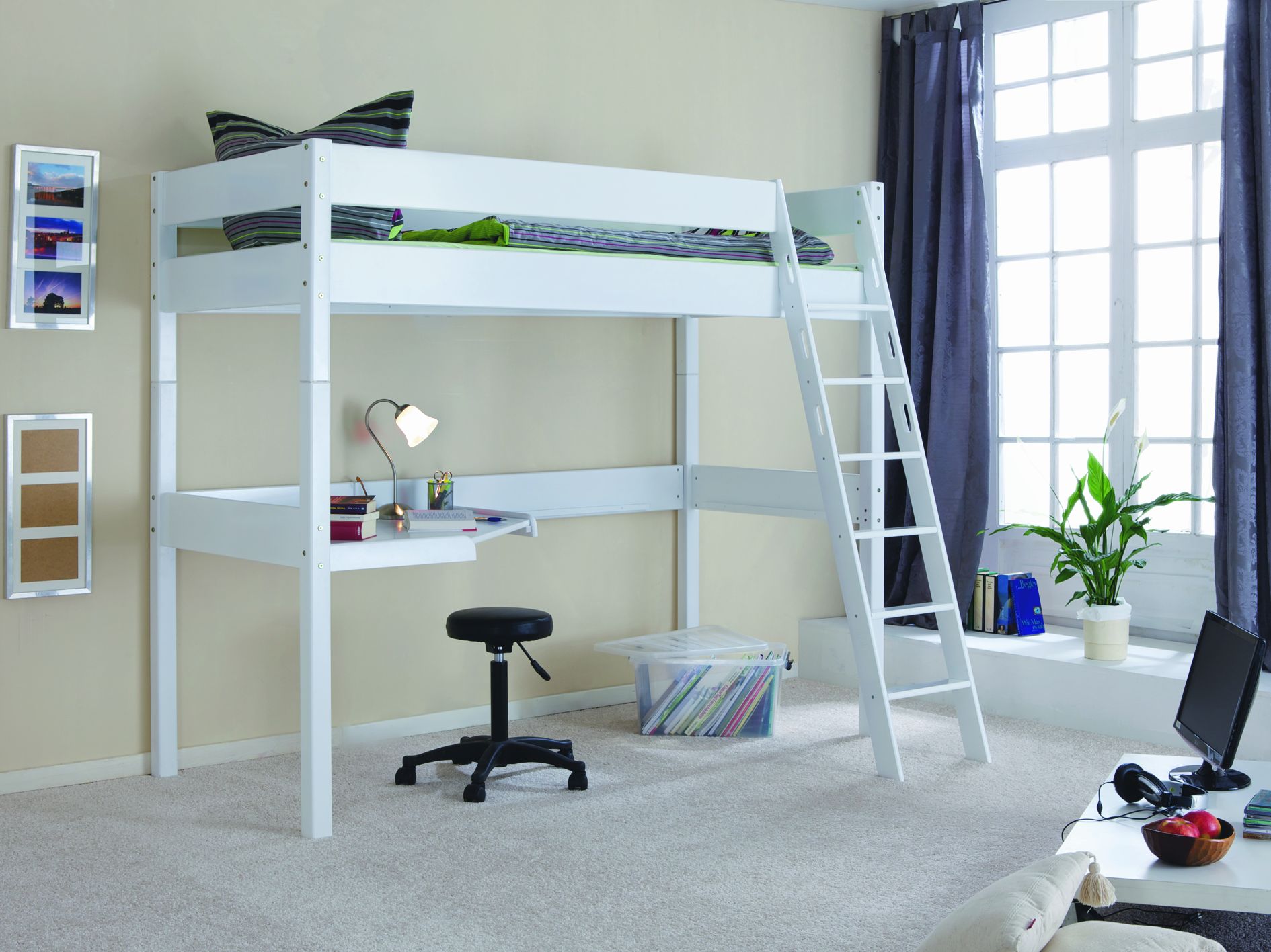Hochbett RENATE Buche in Bi-Color lackiert mit Schreibtisch