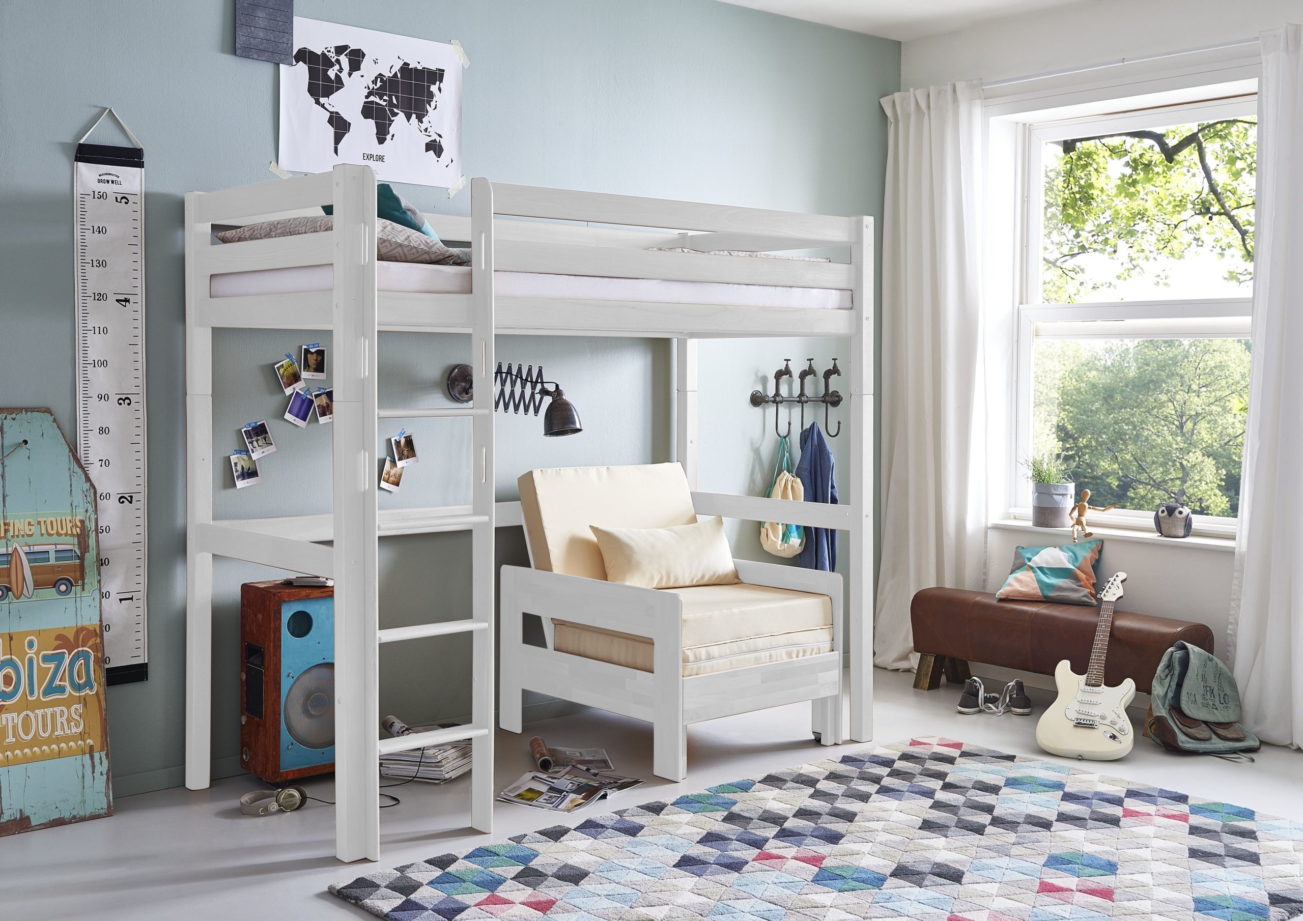 Hochbett TOLI inkl. Sessel Buche massiv weiß lackiert