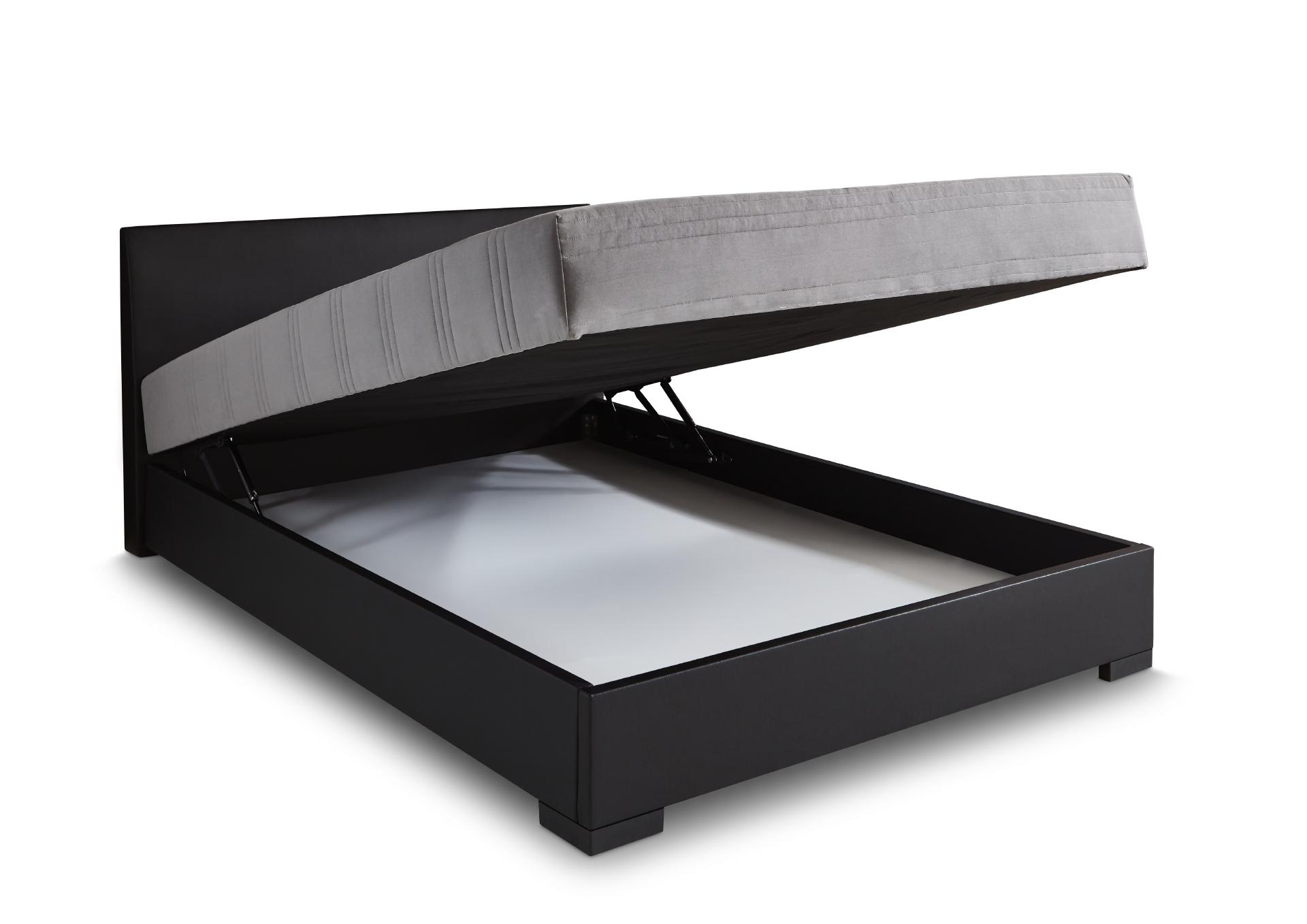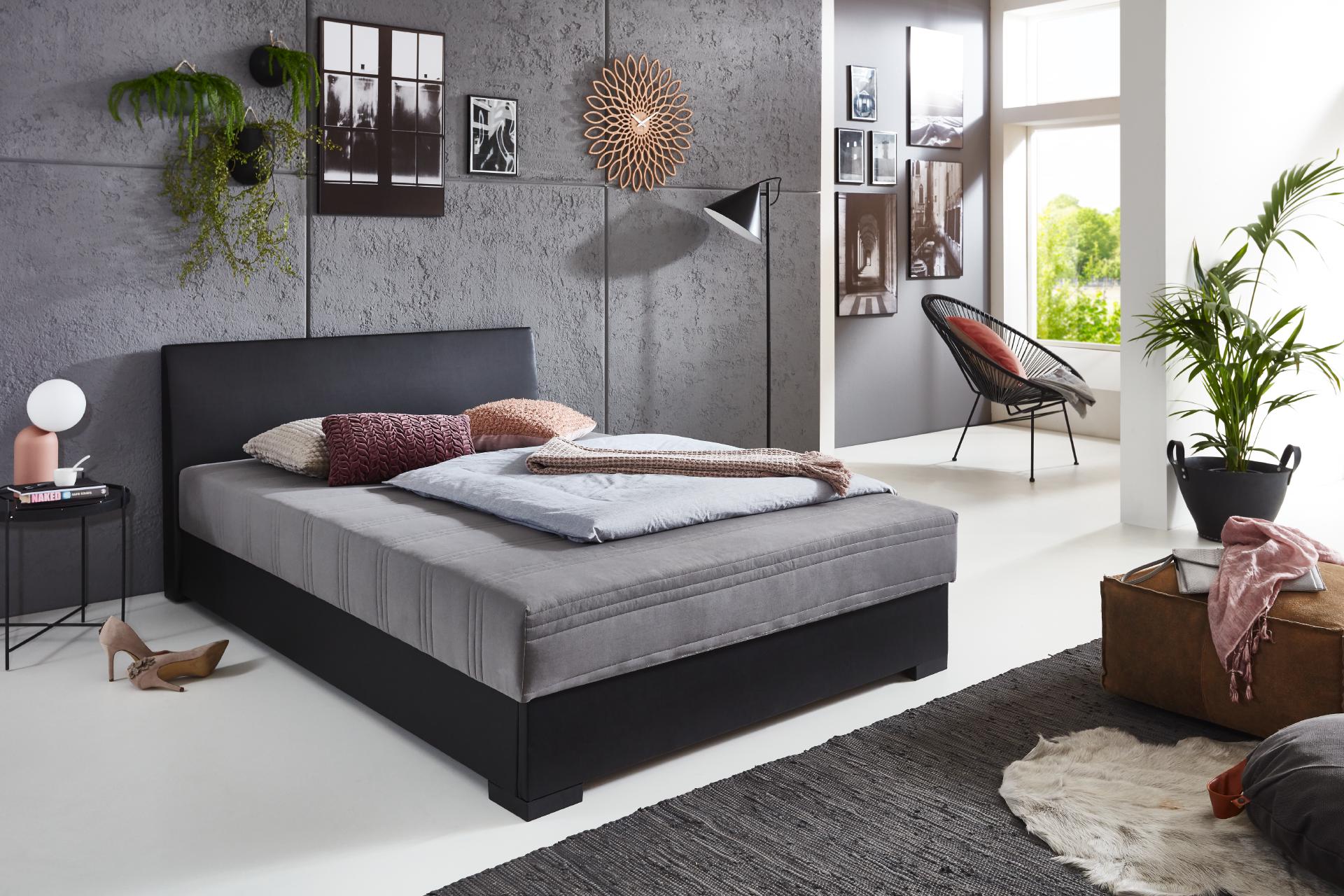 Polsterbett MELS schwarz/anthrazit 140×200 cm mit Federkernmatratze und Bettkasten