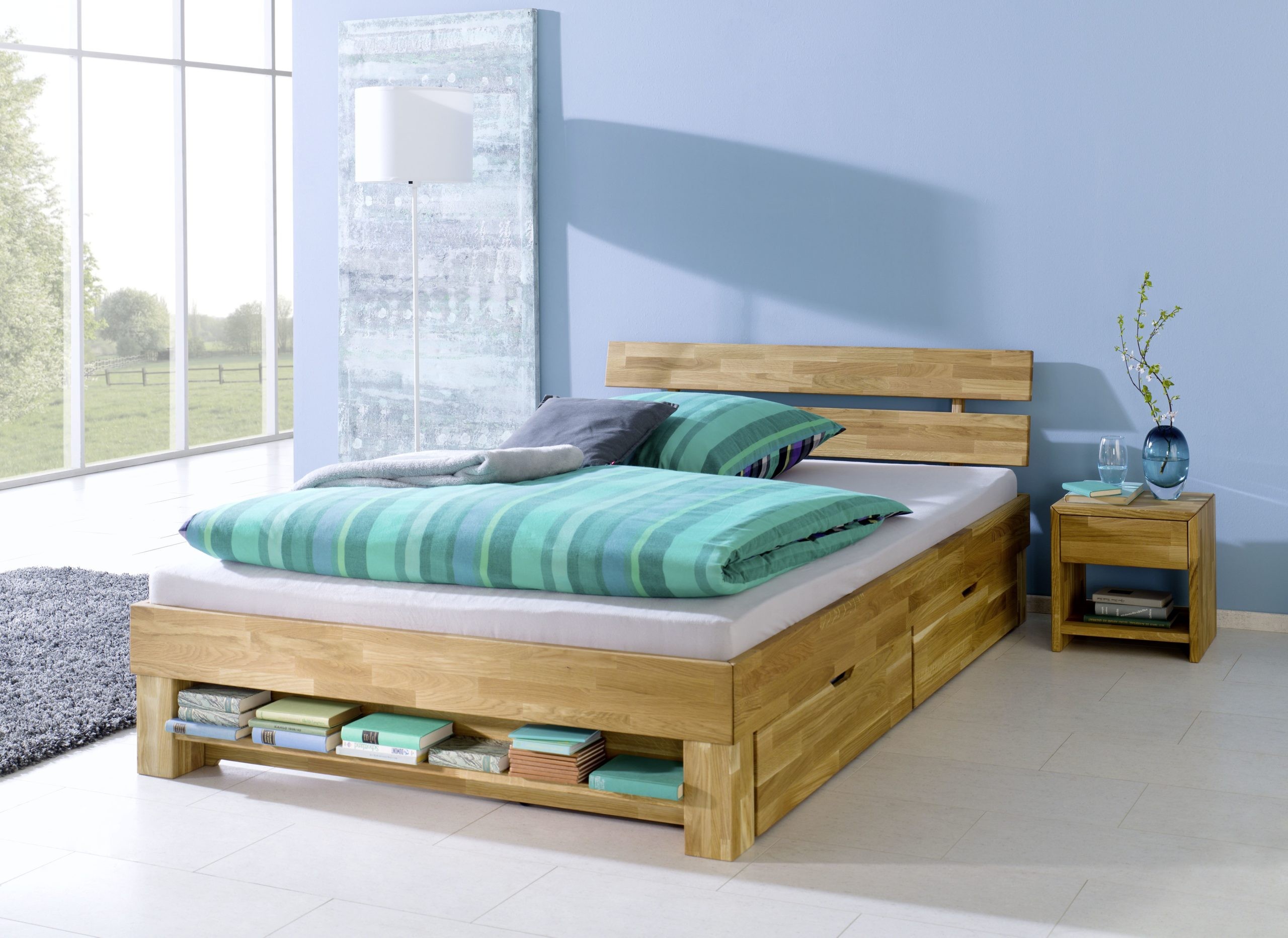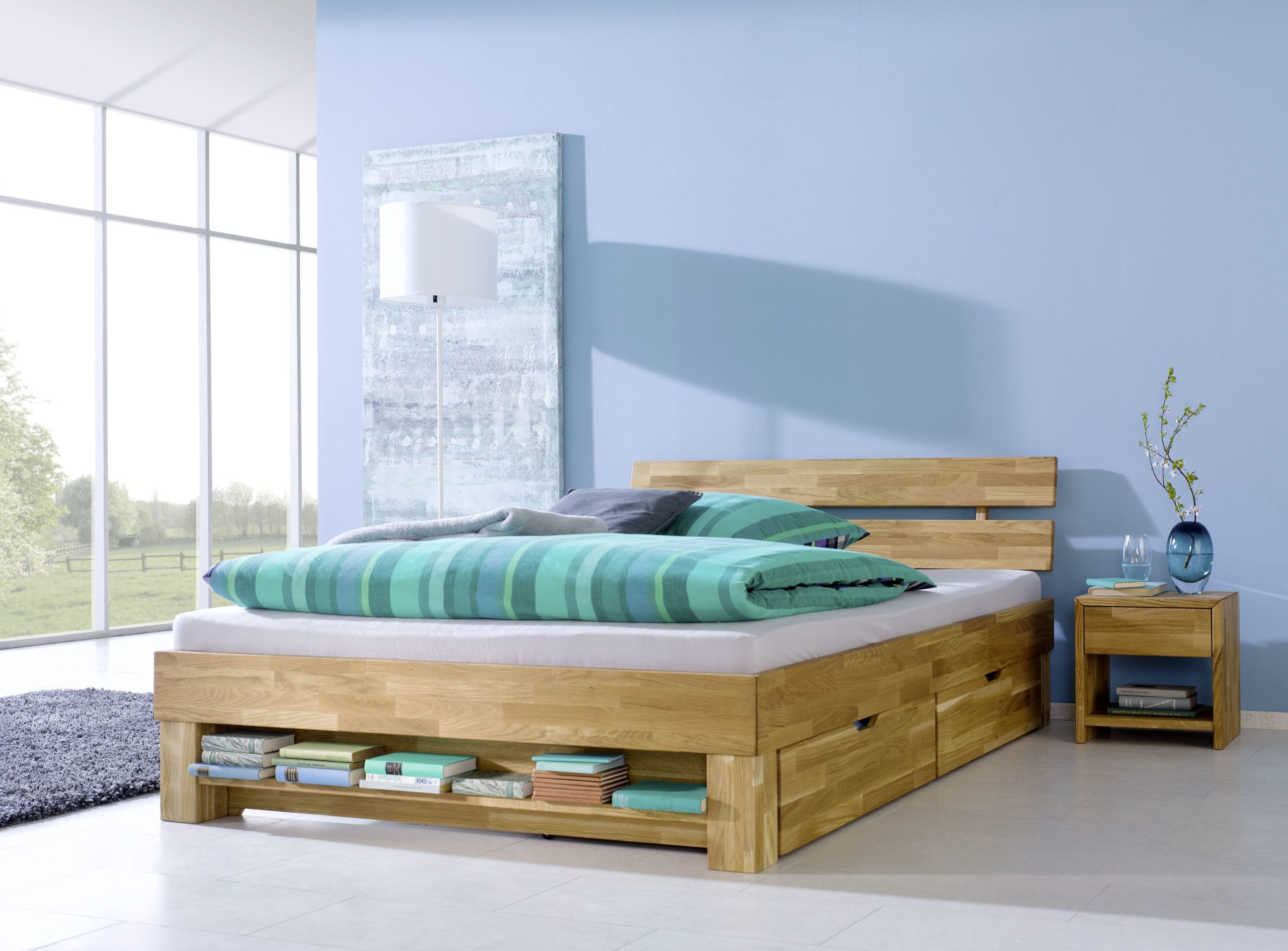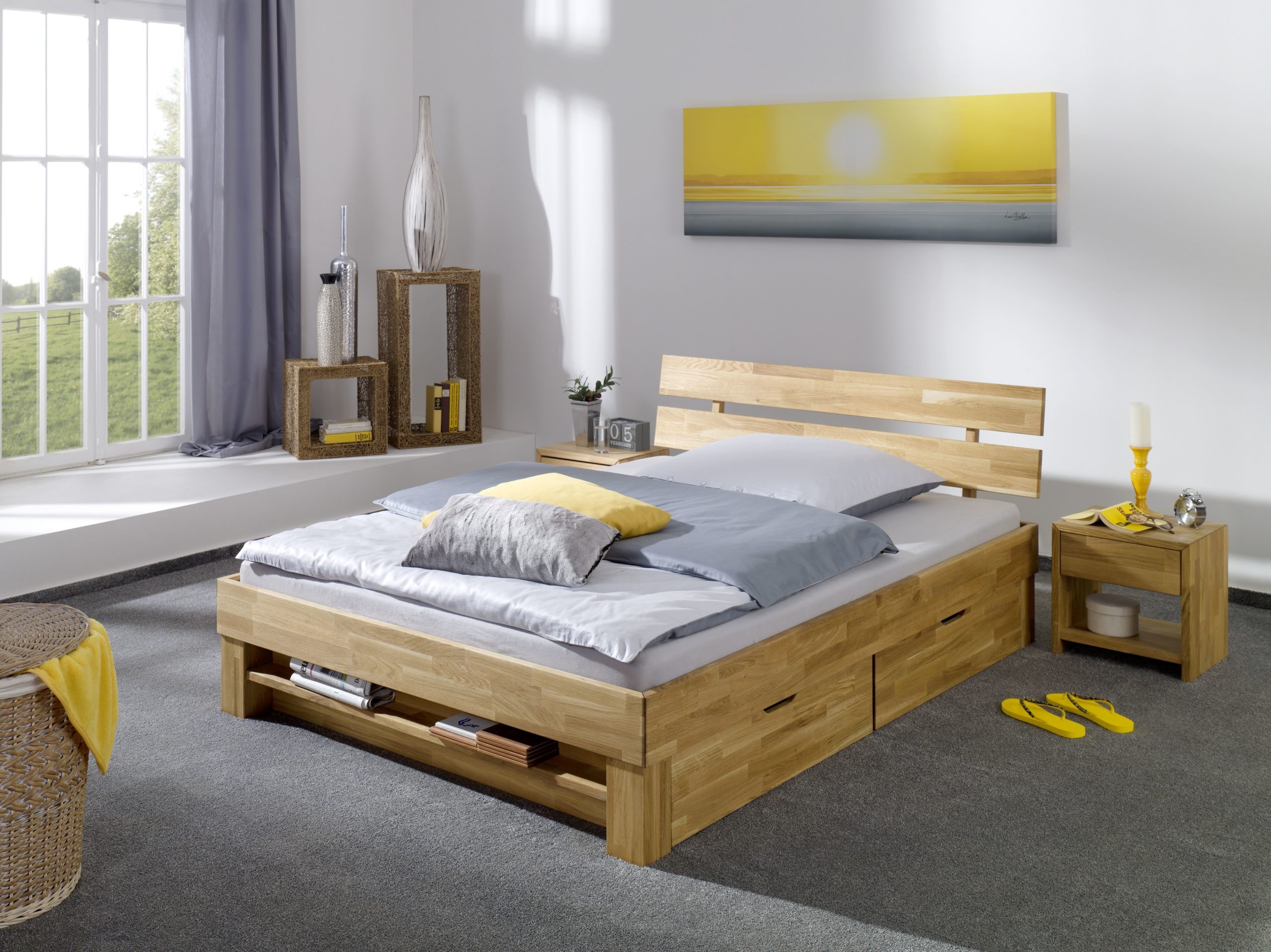 Halbhohes Bett Kick 90 x 200 mit Lattenrost Textilset und Rutsche Buche massiv natur lackiert