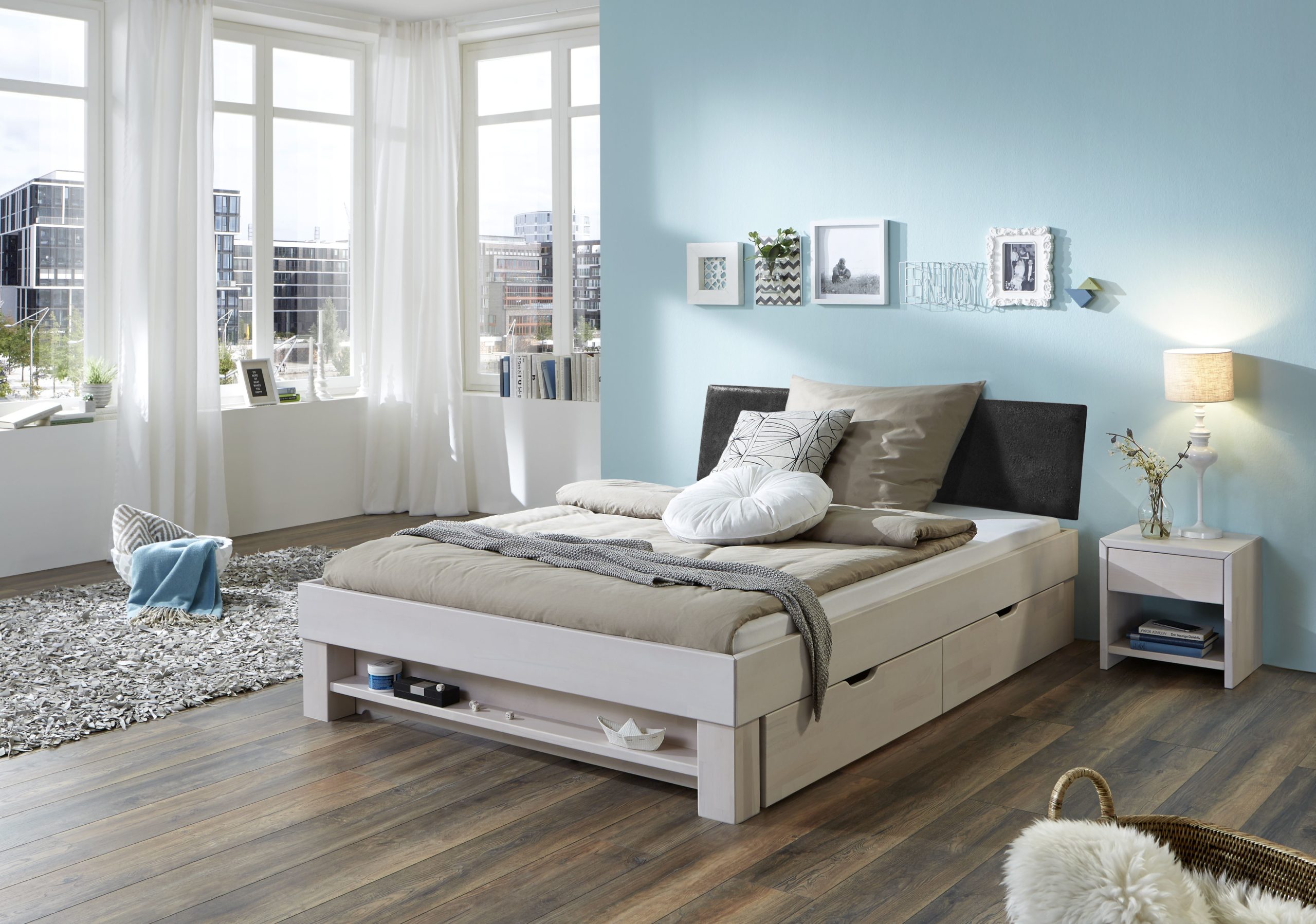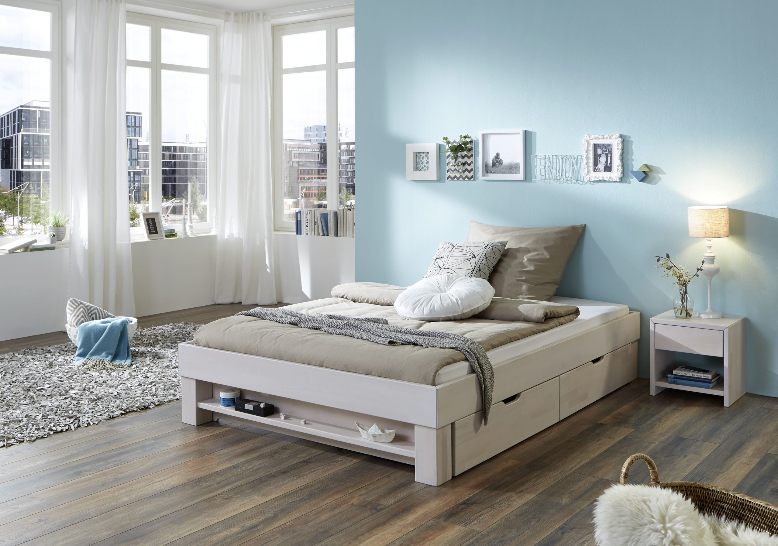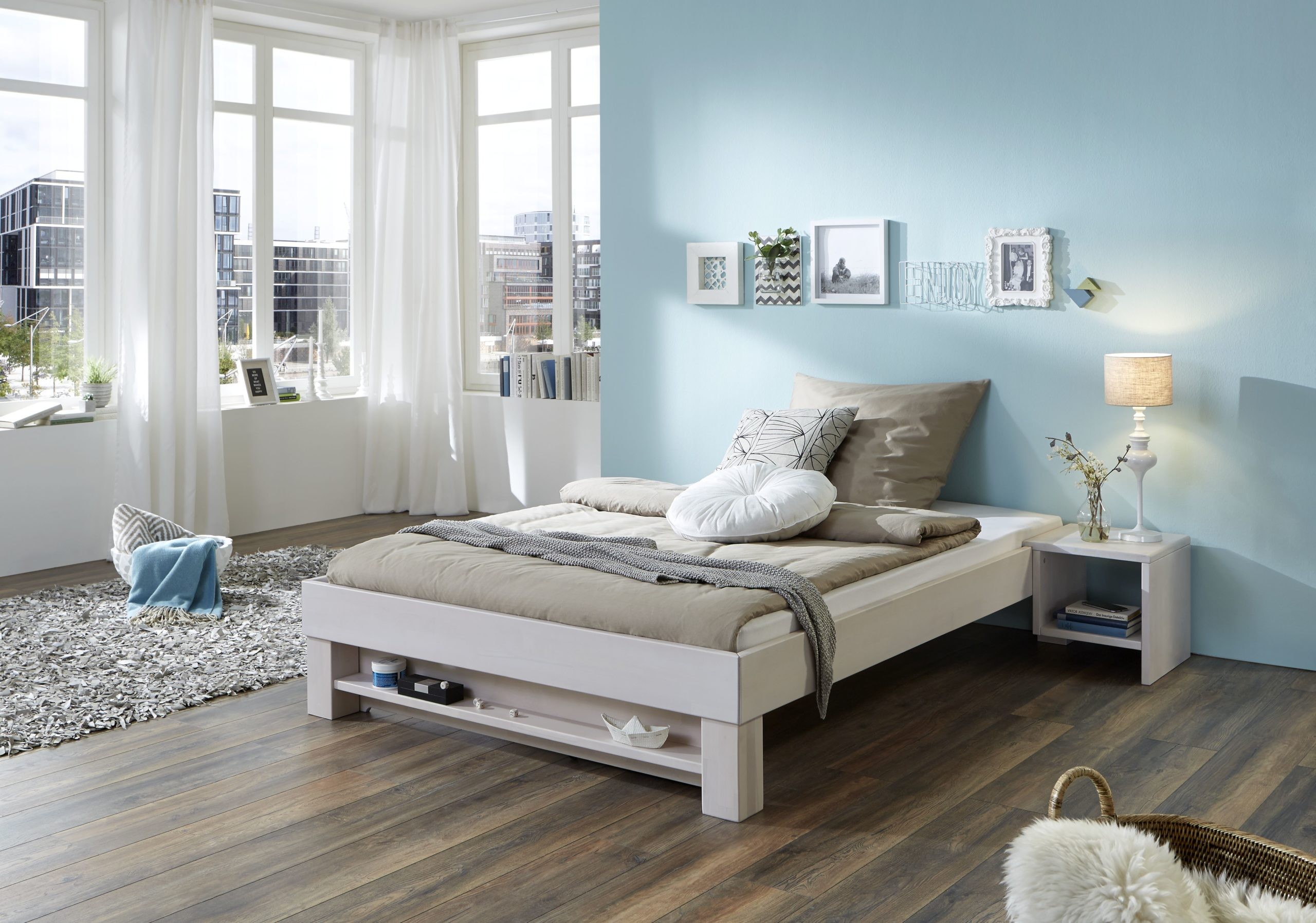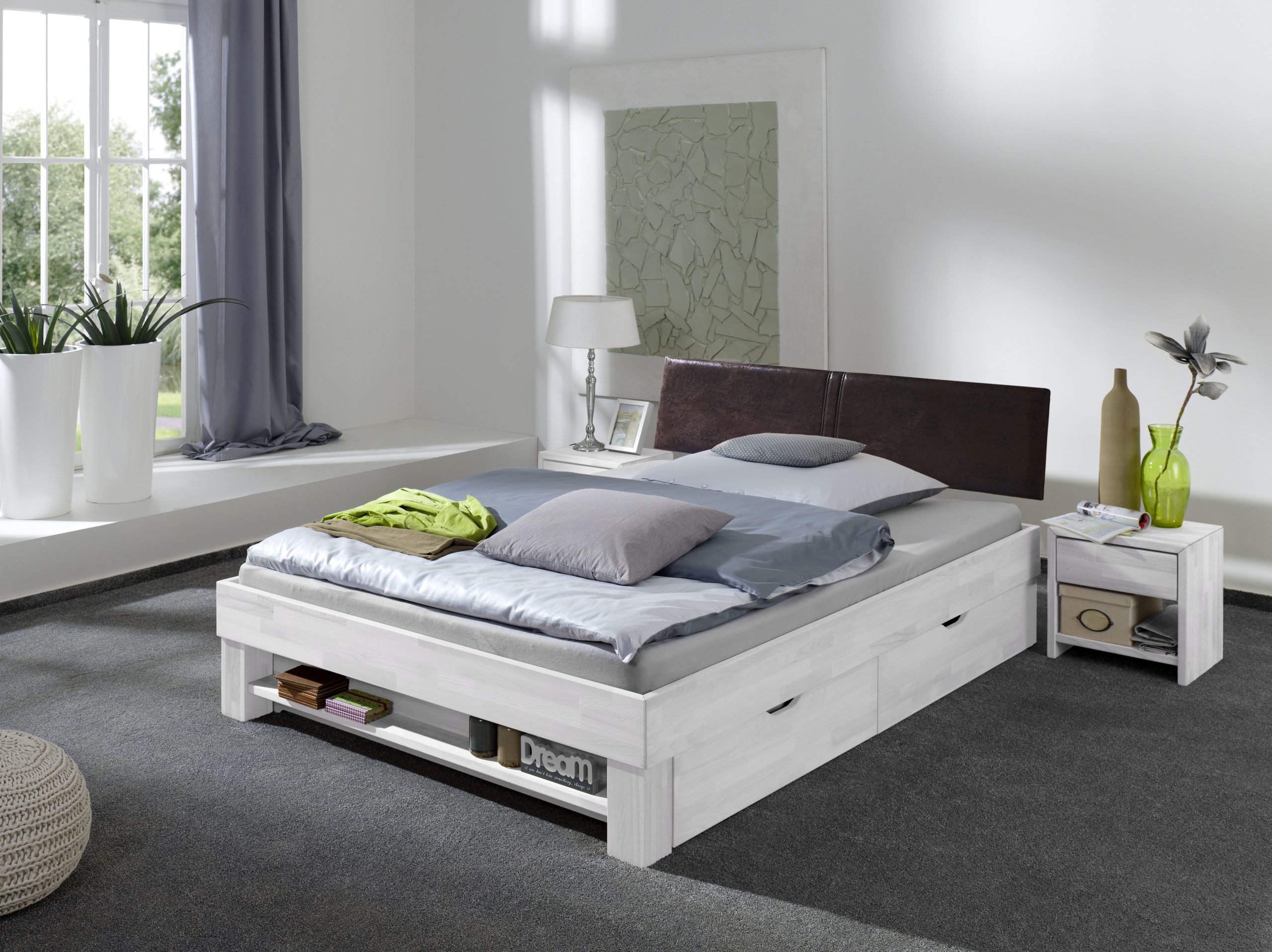 Halbhohes Bett MICHELLE 90×200 Buche massiv weiß lackiert