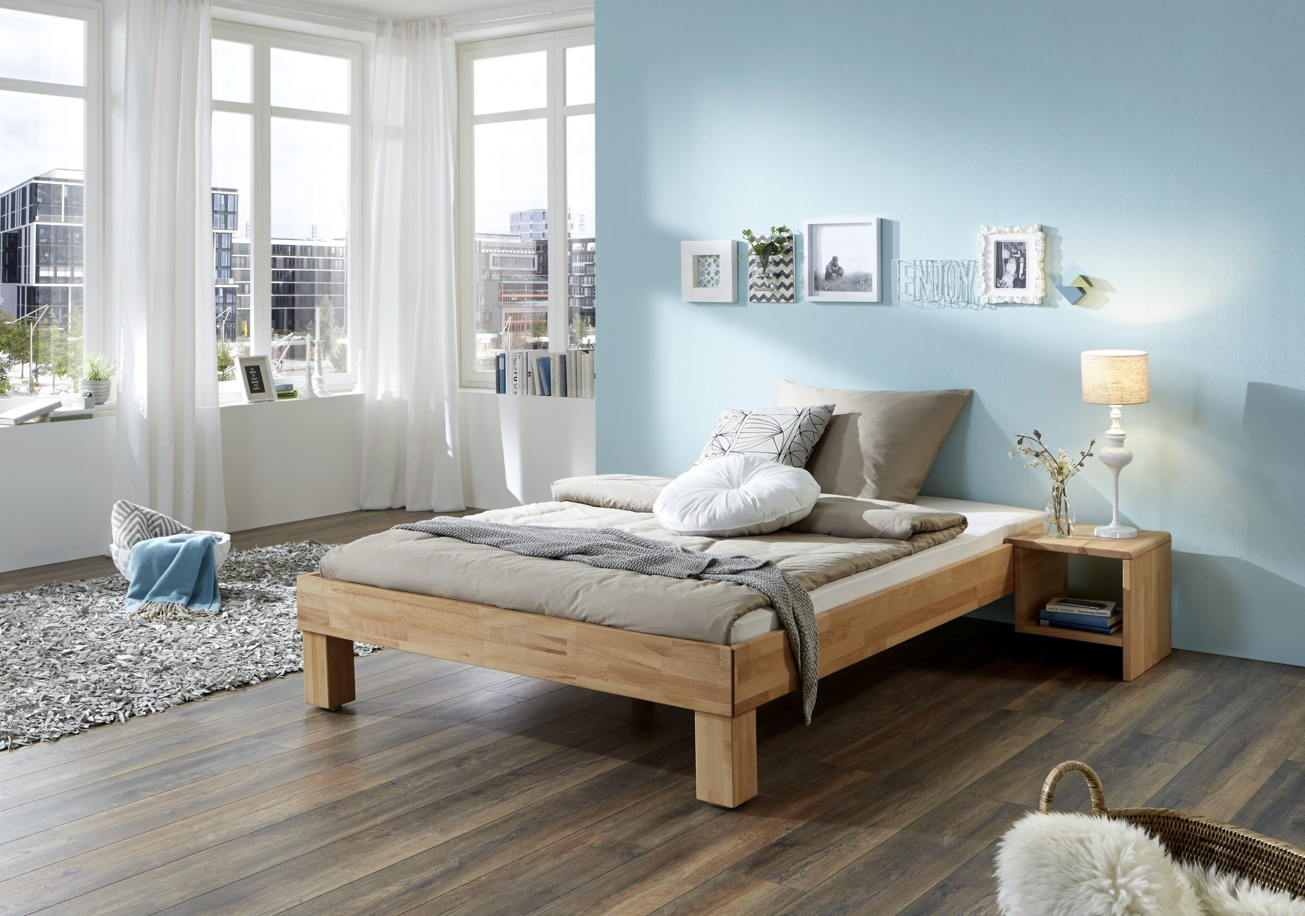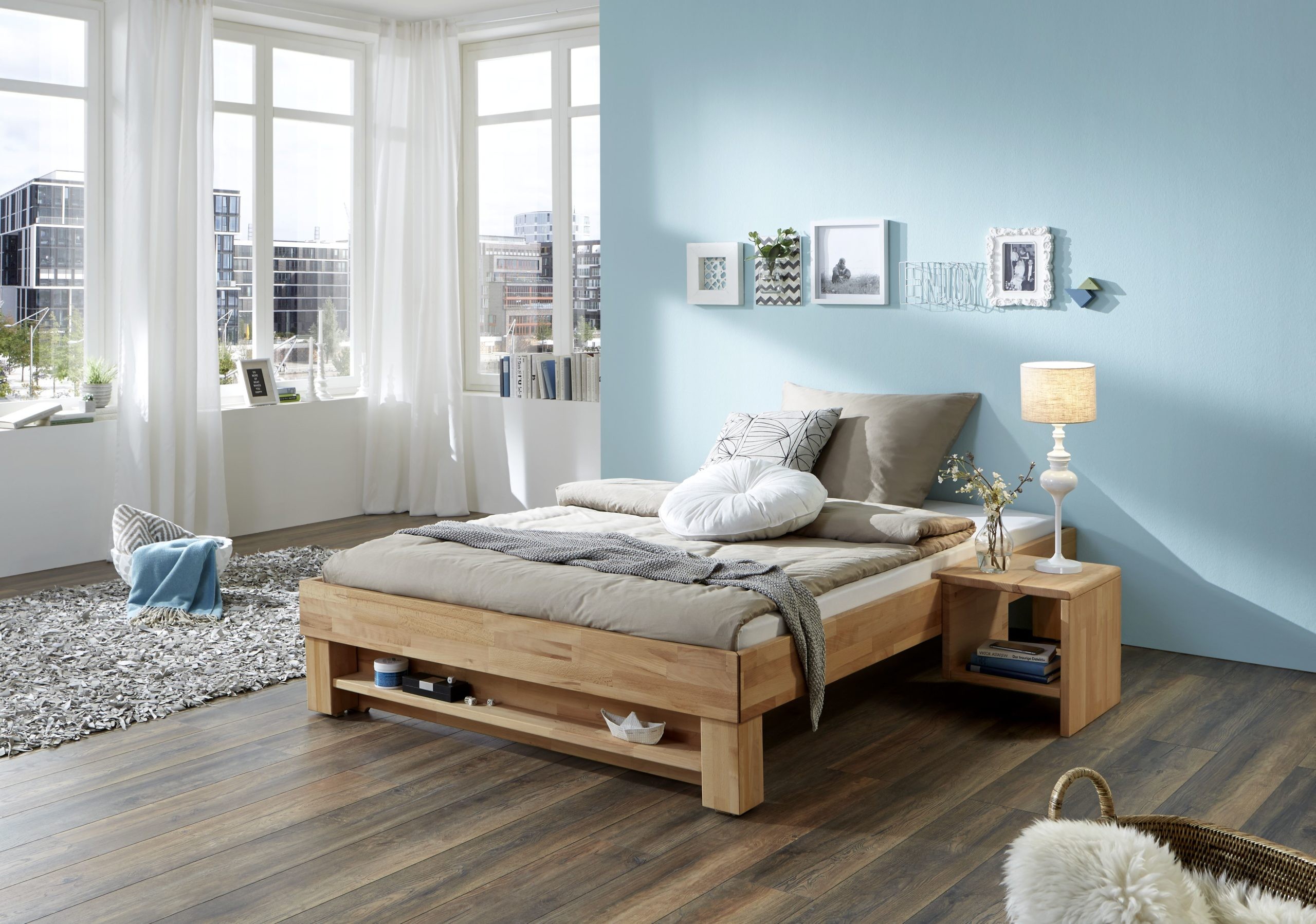 Futonbett Manuela 90/140/180/200×200 Buche massiv white wash