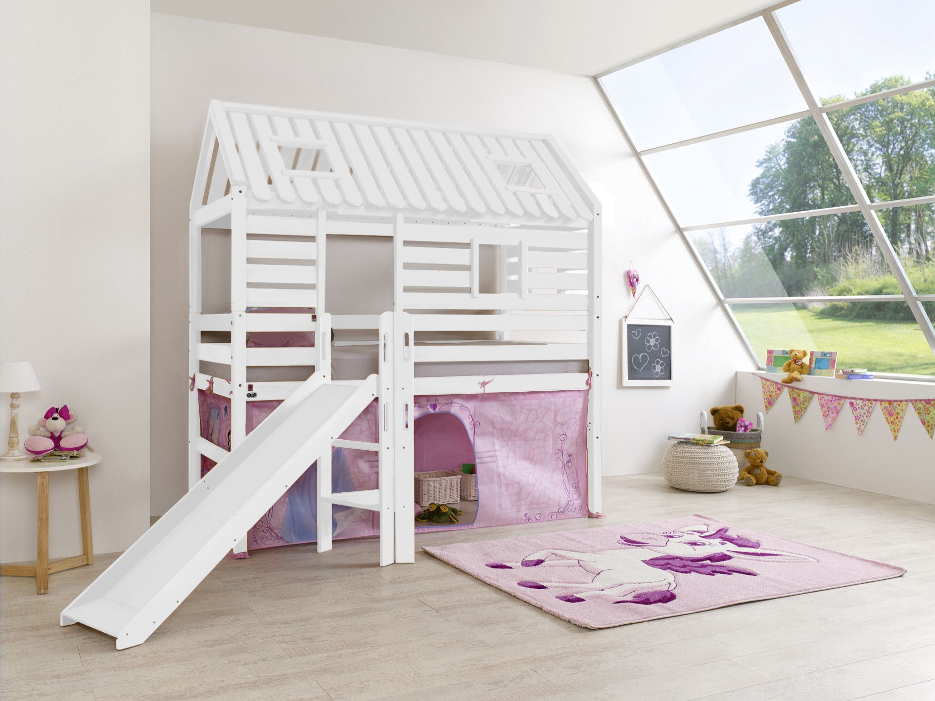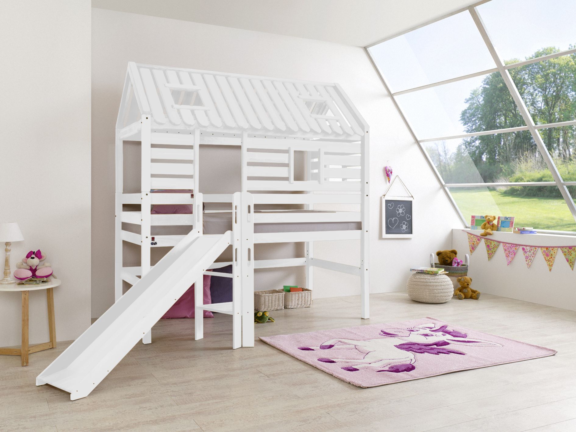Spielbett Eliyas mit Rutsche weiß