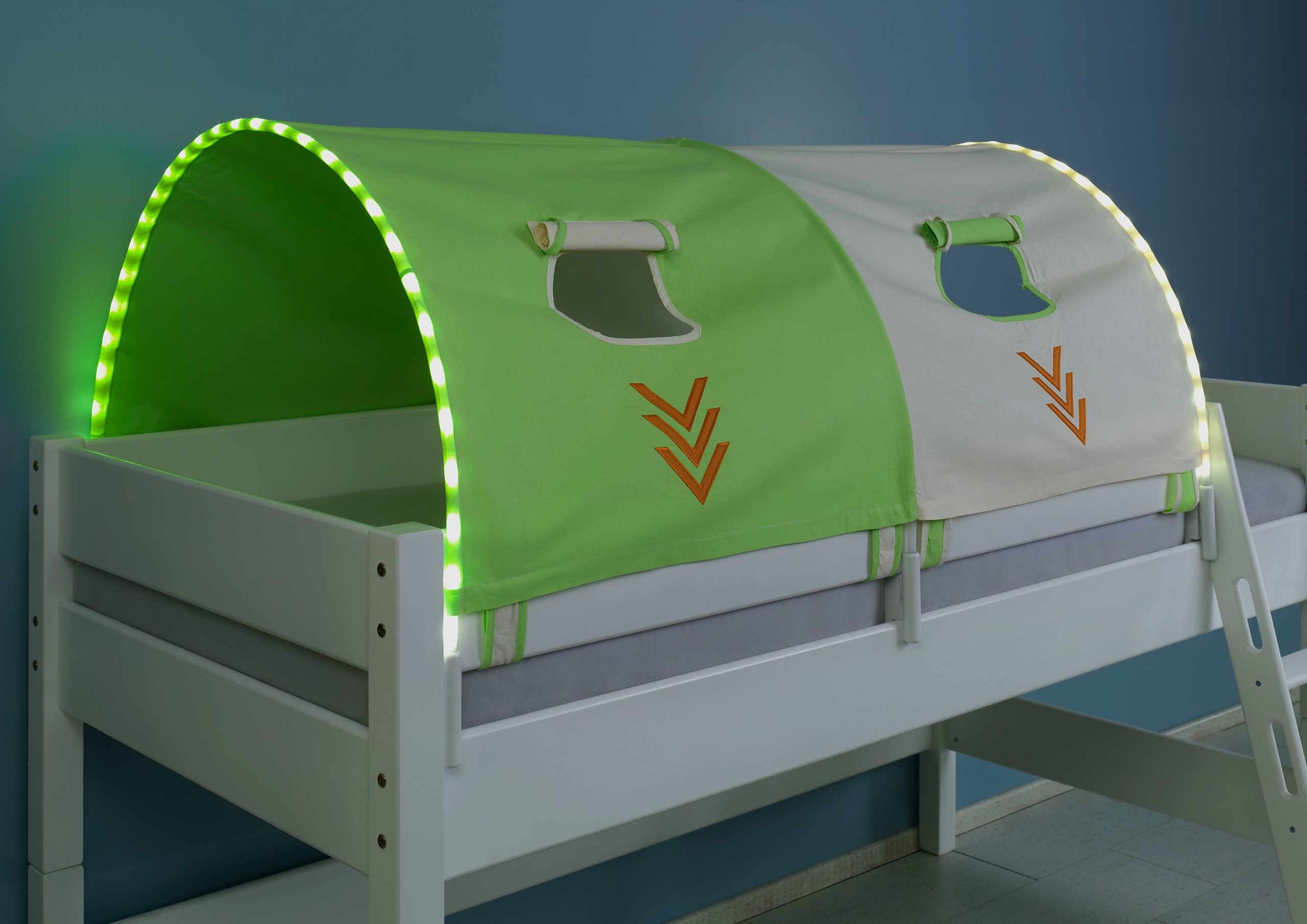 Tunnel groß mit LED Beleuchtung in Design blau-boy Halterung natur