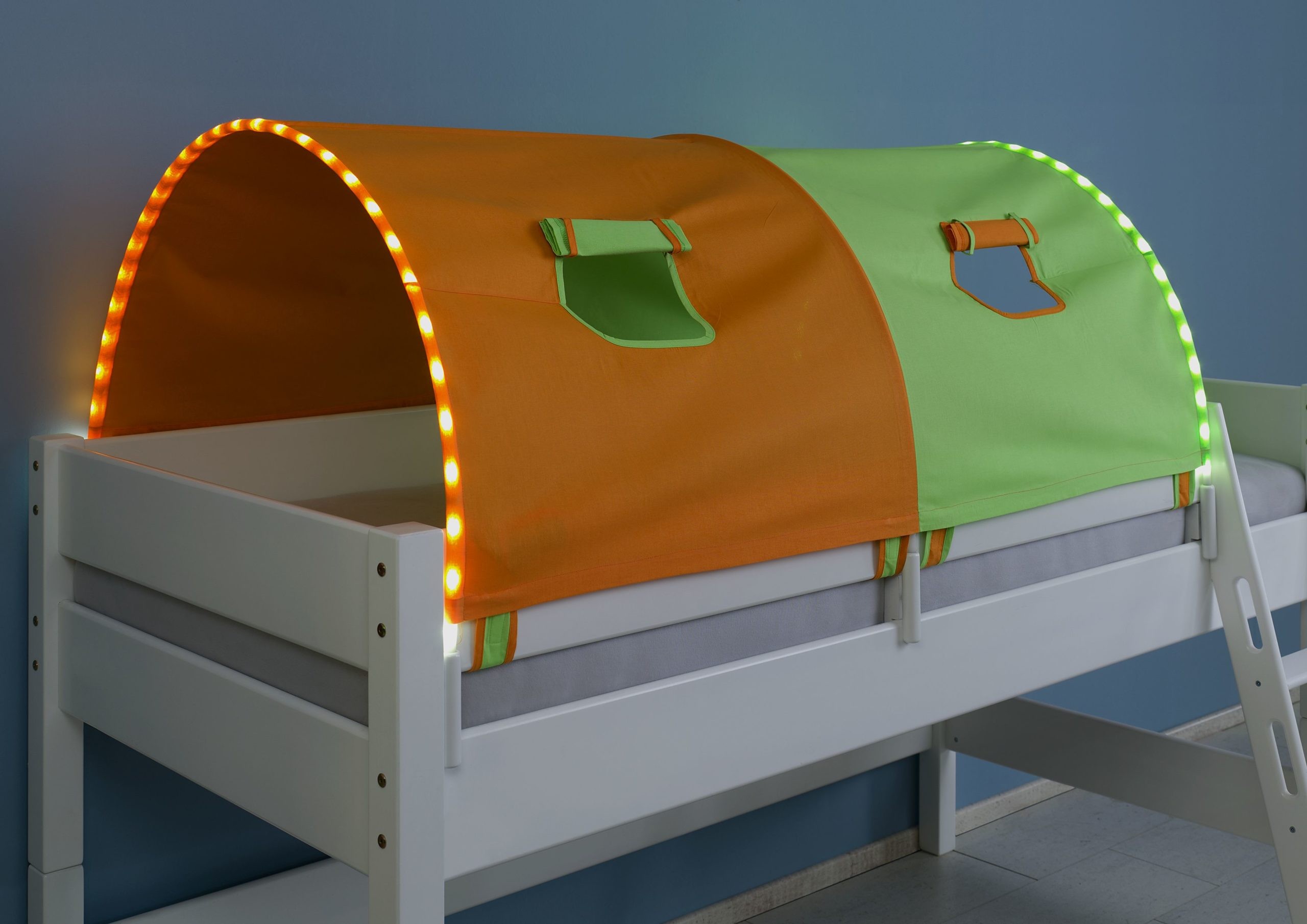 Tunnel groß mit LED Beleuchtung in Design grün/orange Halterung weiß