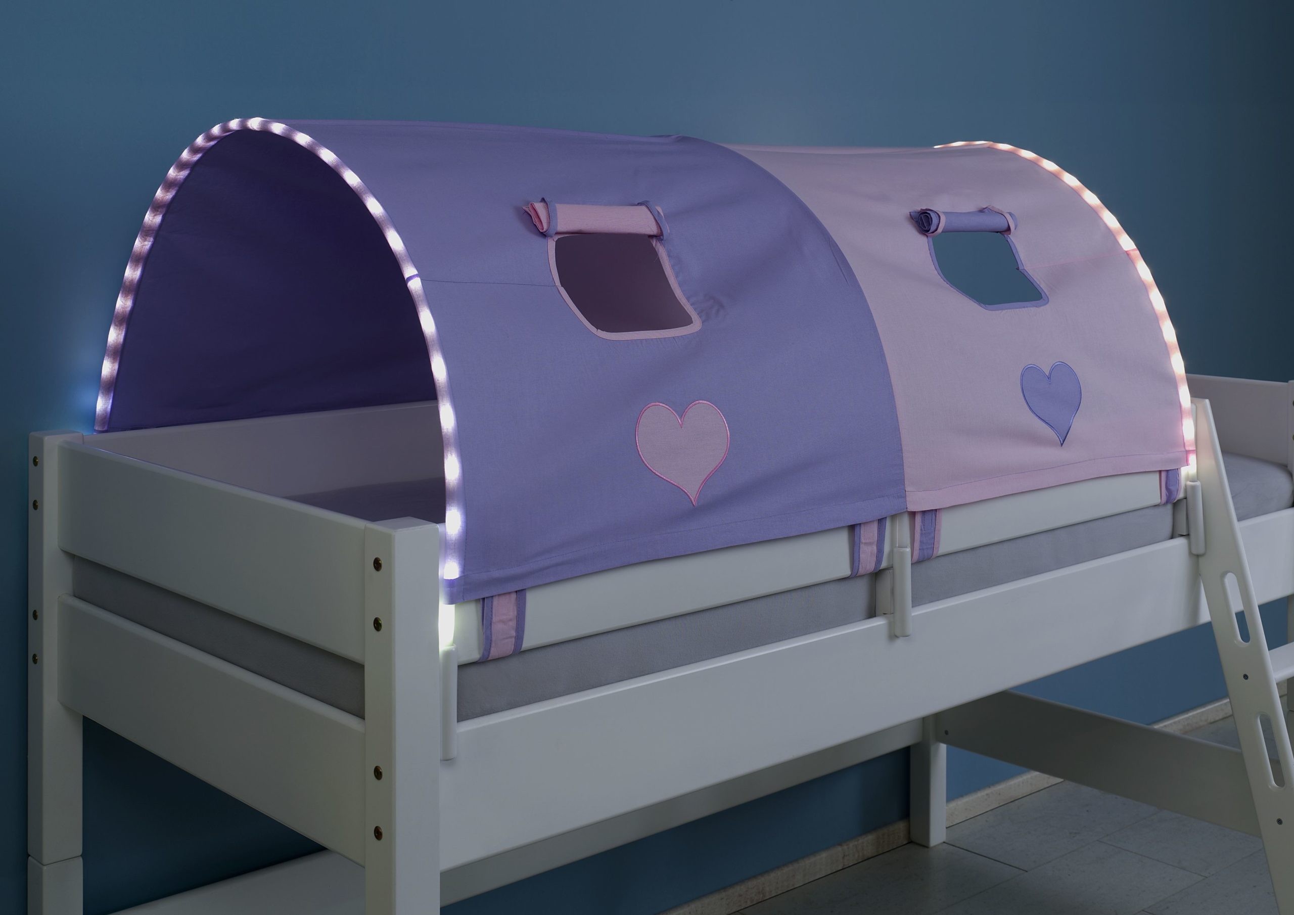 Tunnel groß mit LED Beleuchtung in Design purple/rosa-Herz Halterung weiß