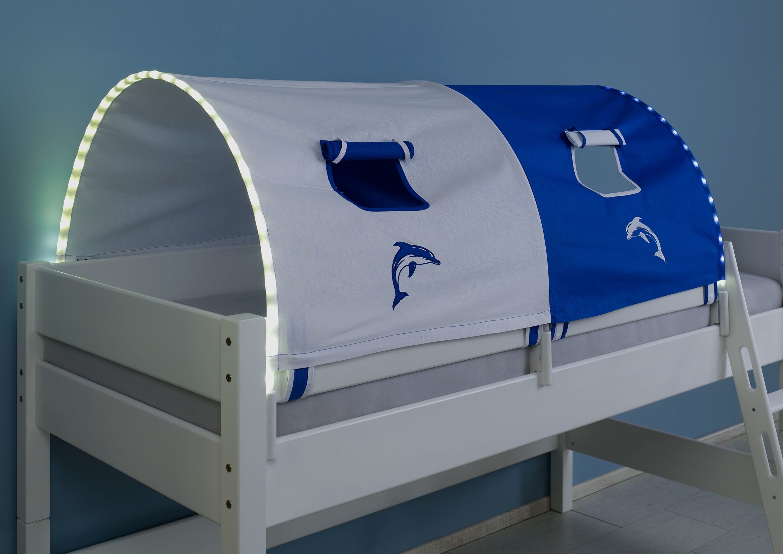Tunnel groß mit LED Beleuchtung in Design weiss/delphin Halterung weiß