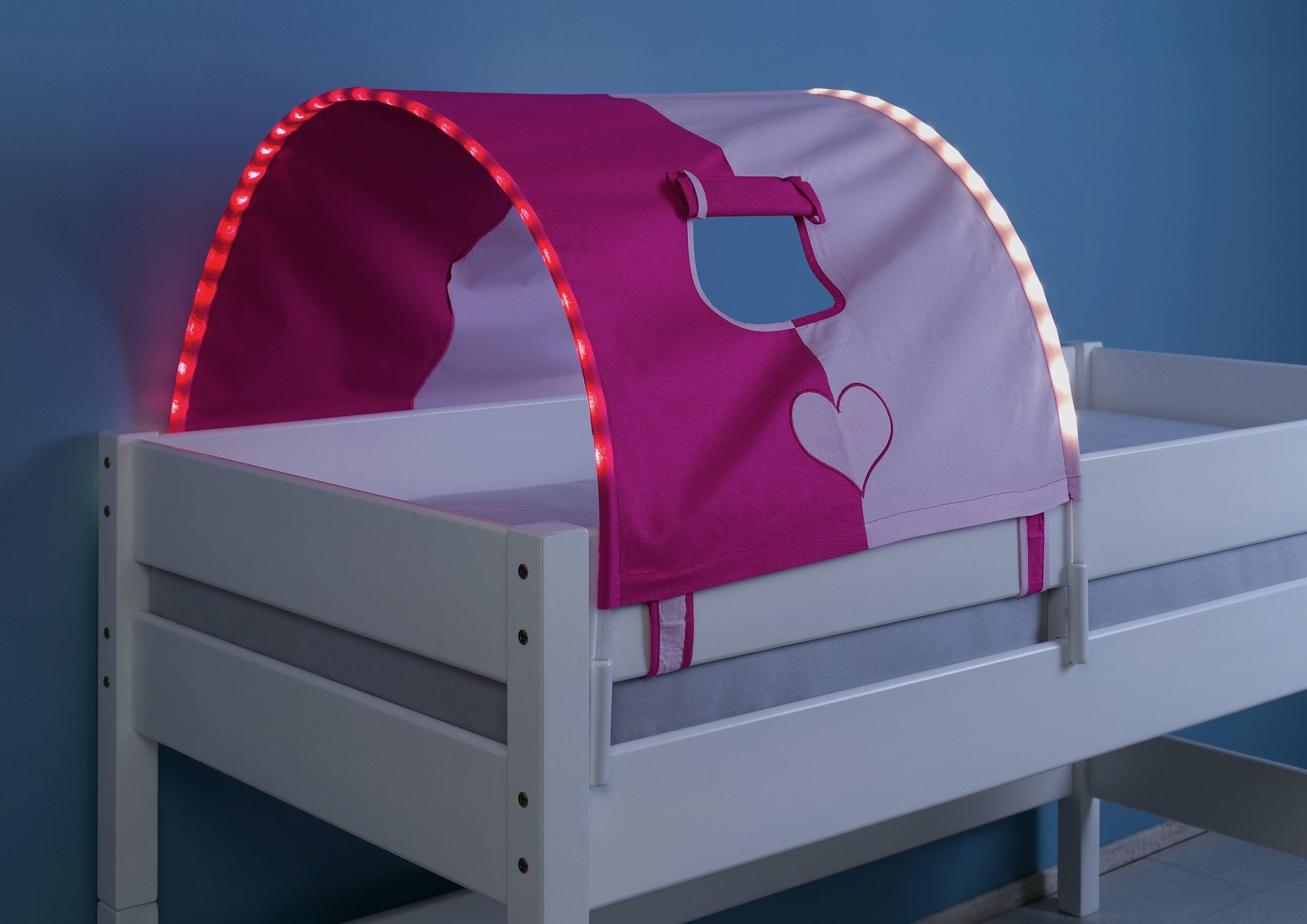 Tunnel klein mit LED Beleuchtung in Design pink/Herz Halterung weiß